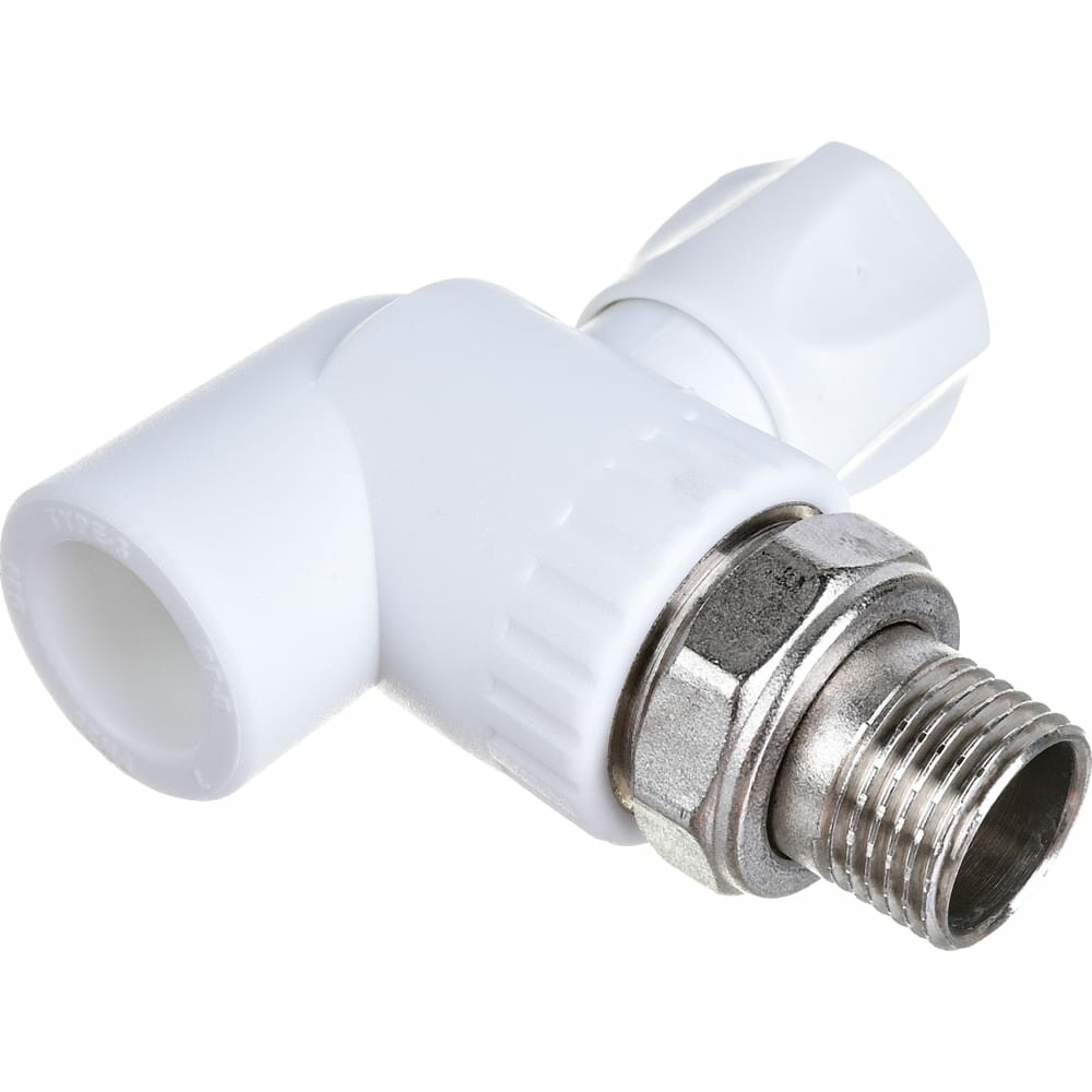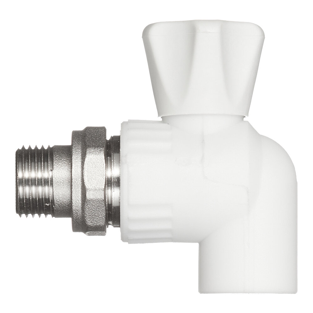 Купить Кран шаровой для радиатора угловой PPR 20х1/2, белый, RTP