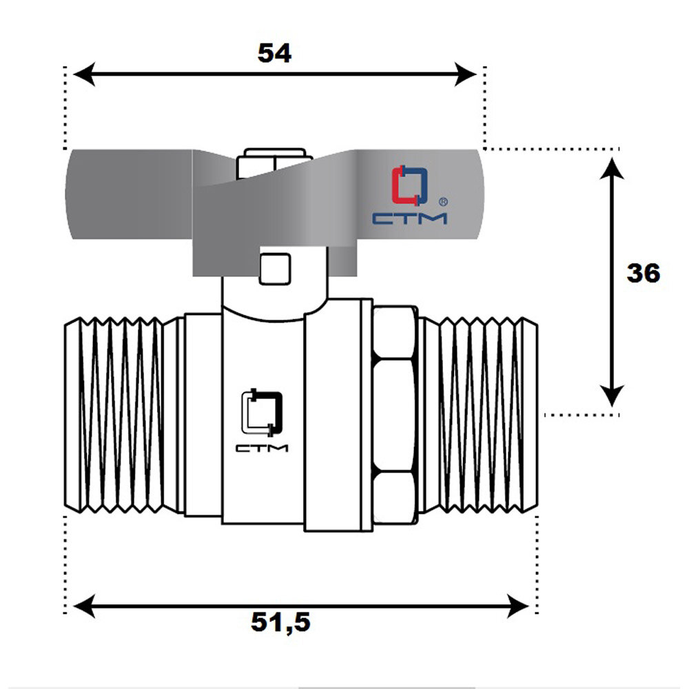 Кран шаровой для воды 3/4" наружная/наружная резьба бабочка CTM стандарт CWMMB034