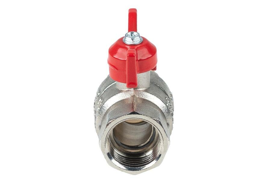 Кран шаровой латунь никель Стандарт Ду 15 Ру40 ВР/НР полнопроходной бабочка красная Dist Н321Б