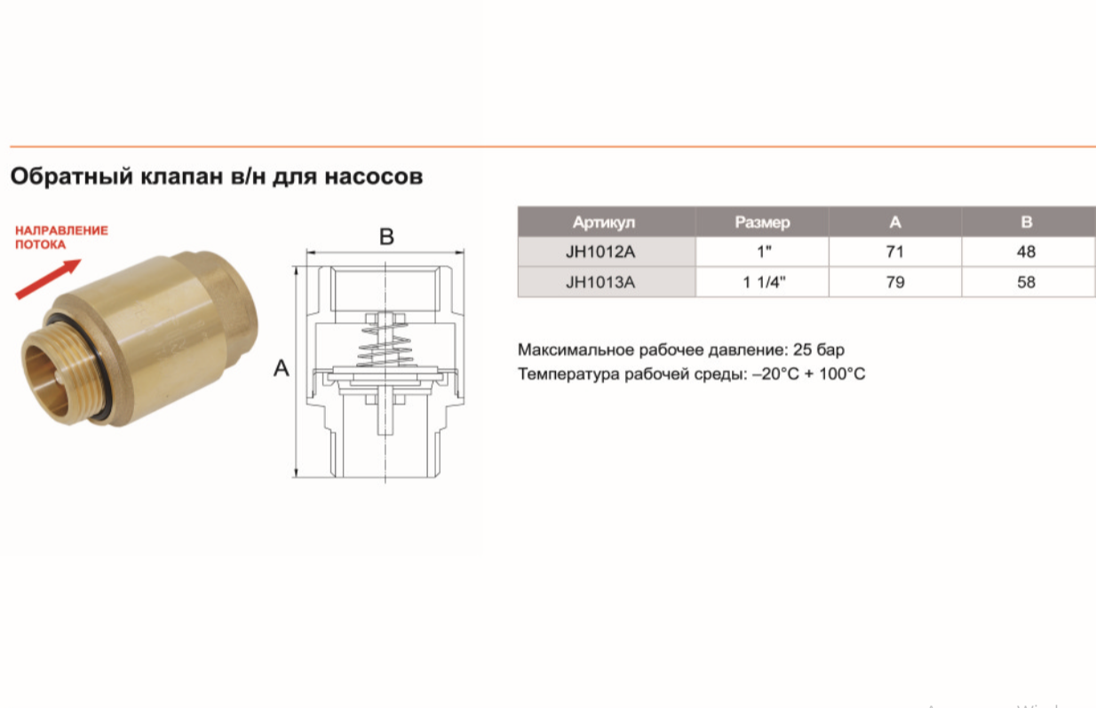 Обратный клапан для скважинного насоса с металлическим штоком 1 1/4"НР-ВР TIM арт. JH-1013A интересное: