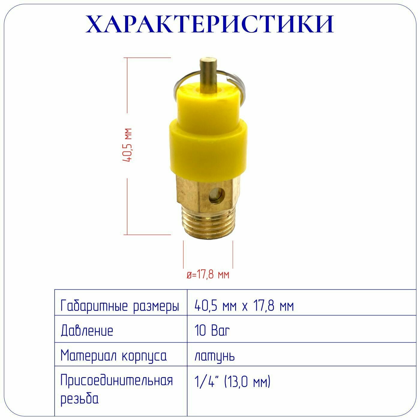 Предохранительный клапан 1/4 (10 бар) для воздушного компрессора