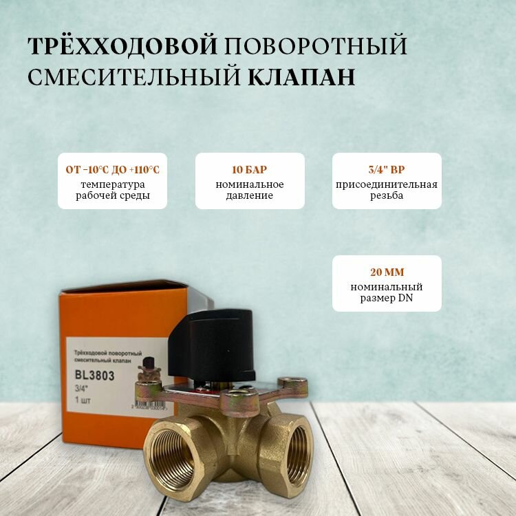 Трёхходовой поворотный смесительный клапан 3/4 дюйма, с возможностью установки сервопривода TIM BL3803
