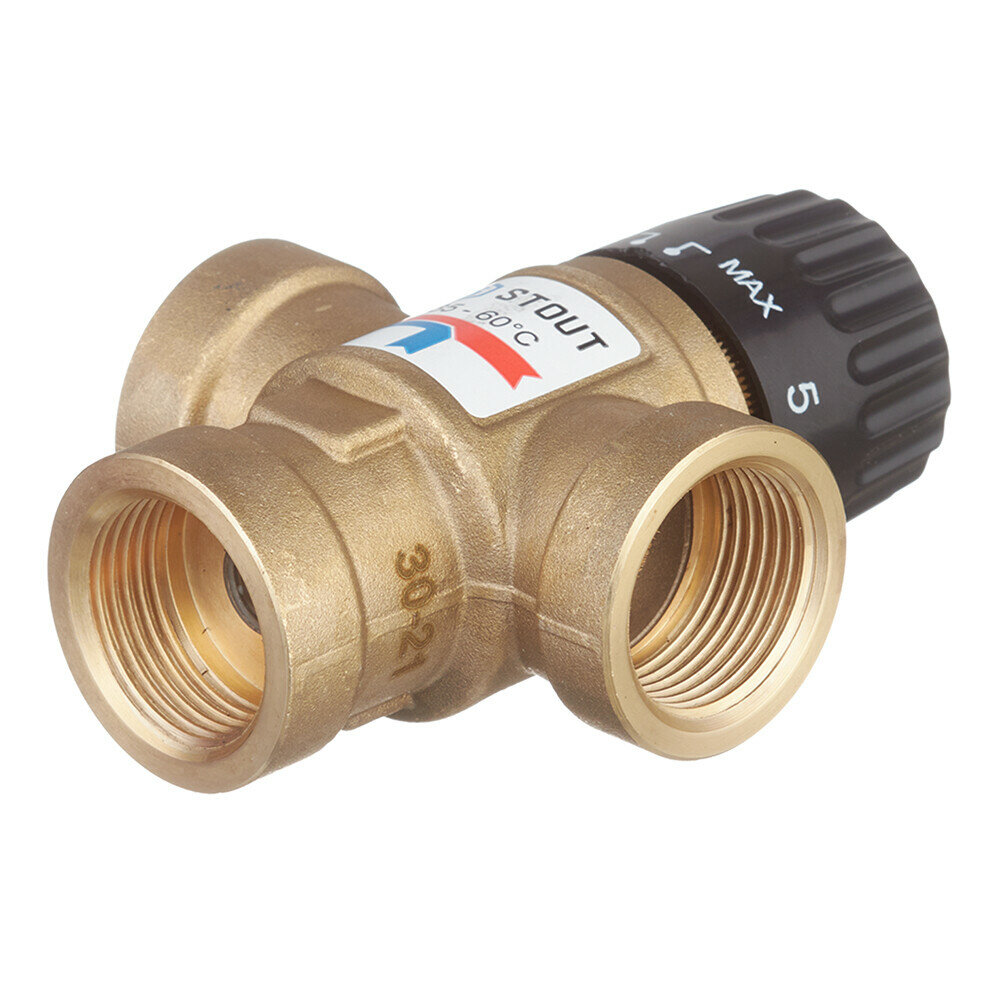 STOUT Термостатический смесительный клапан 3/4"ВР 35-60°С KV 1,6 боковое смешение (1/10)