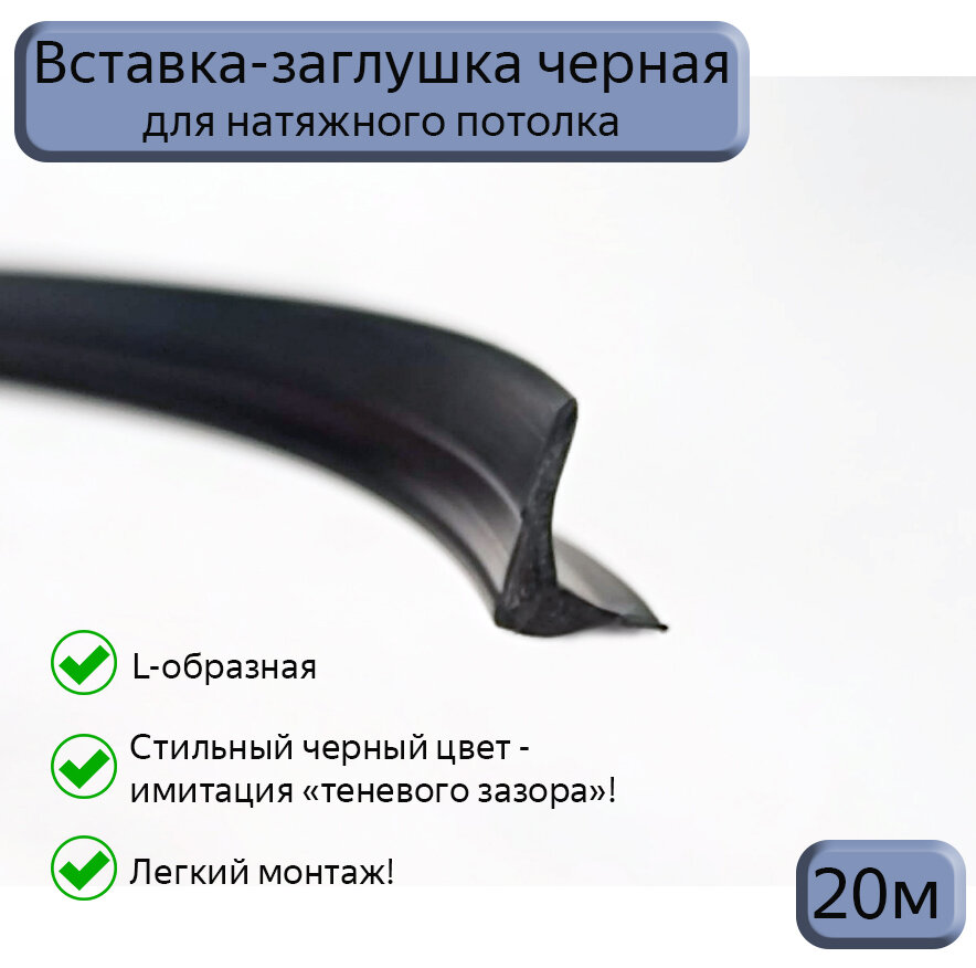 Ниже Вы можете прочитать отзывы на Лента маскировочная черная L-образная, вставка-заглушка для натяжного потолка, 20м, ознакомится с подробными характеристиками, посмотреть интересные обзоры и фотографии на Лента маскировочная черная L-образная, вставка-заглушка для натяжного потолка, 20м.