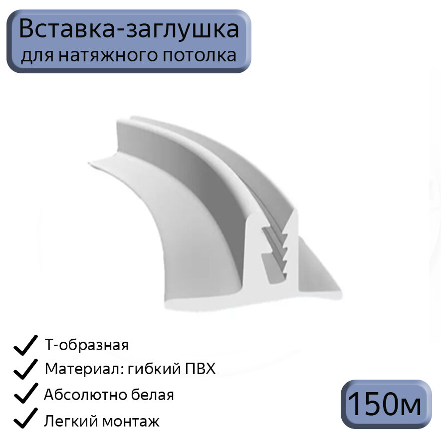 Лента маскировочная Т-образная белая, вставка-заглушка для натяжного потолка, 150м интересное: