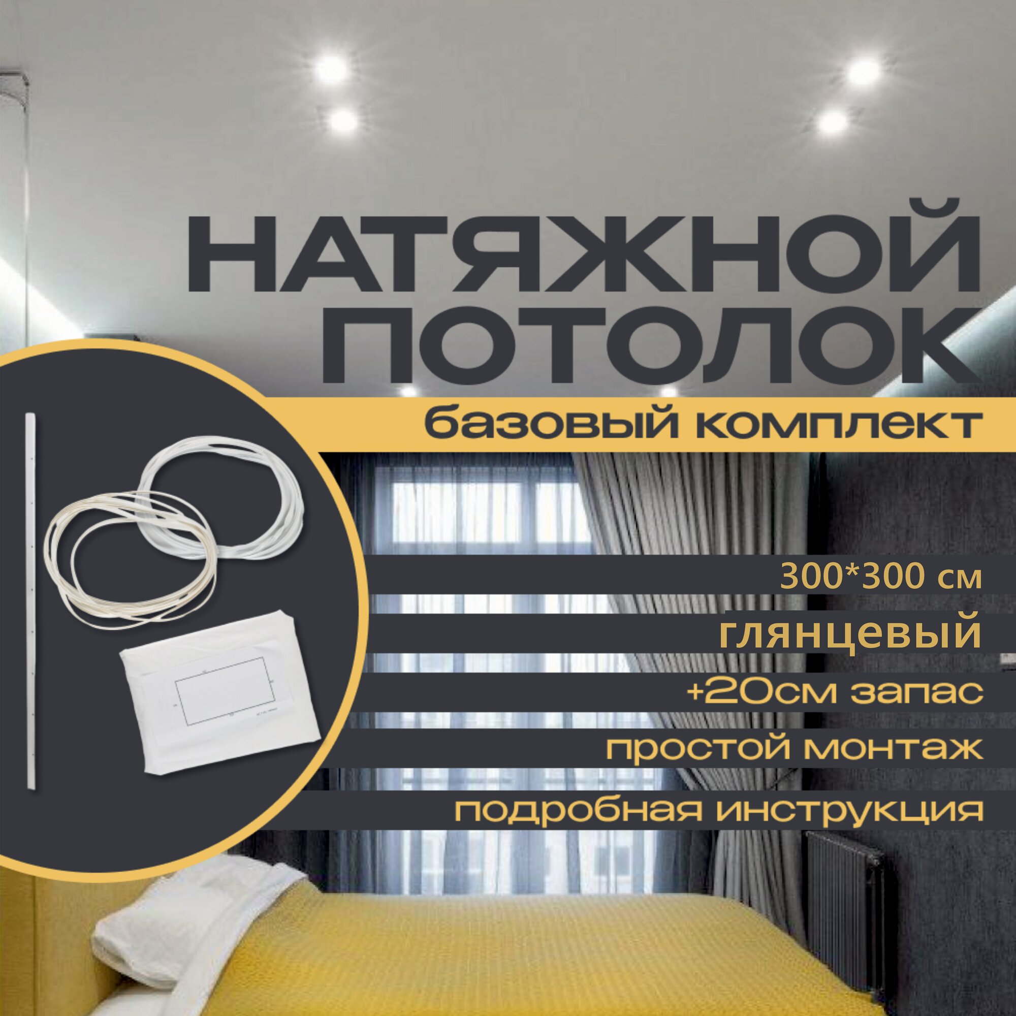 Потолок натяжной глянцевый без нагрева базовый комплект для комнаты 300*300 см