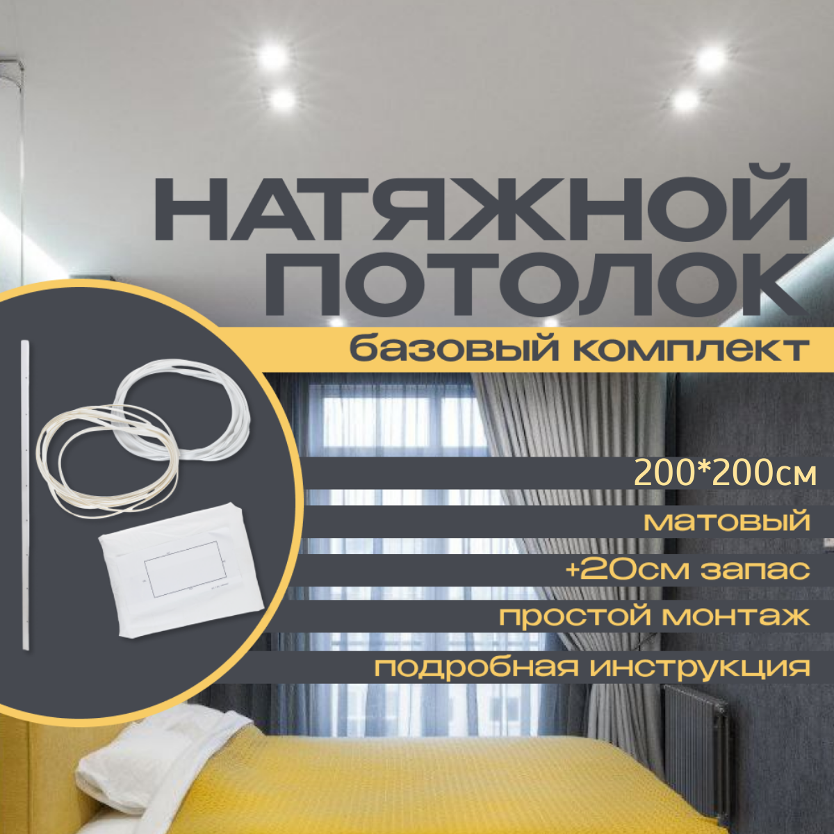 Потолок натяжной без нагрева базовый комплект для комнаты 200*200 см