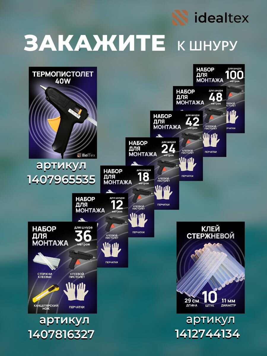 | Подробная комплектация | отрез шнура, инструкция по монтажу |