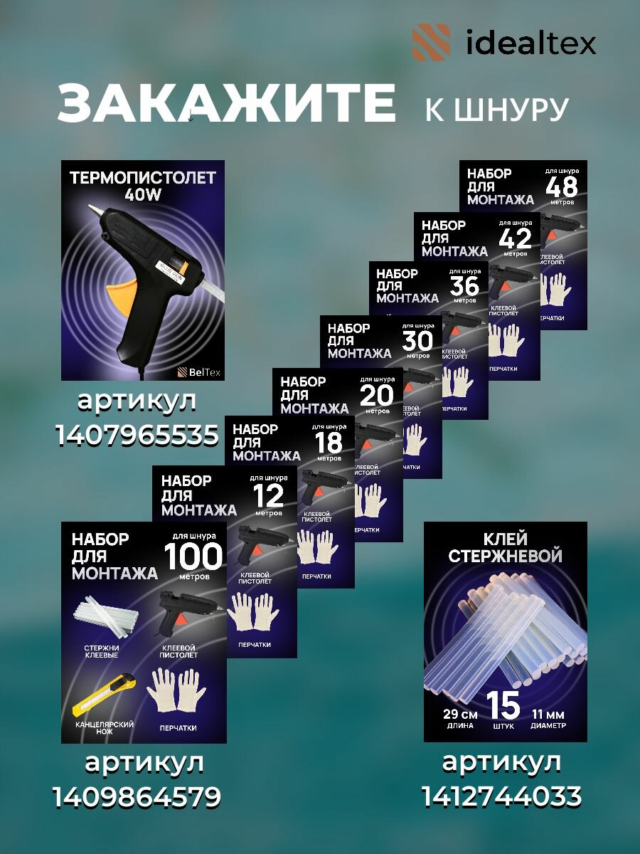 | Подробная комплектация | отрез шнура, инструкция по монтажу |