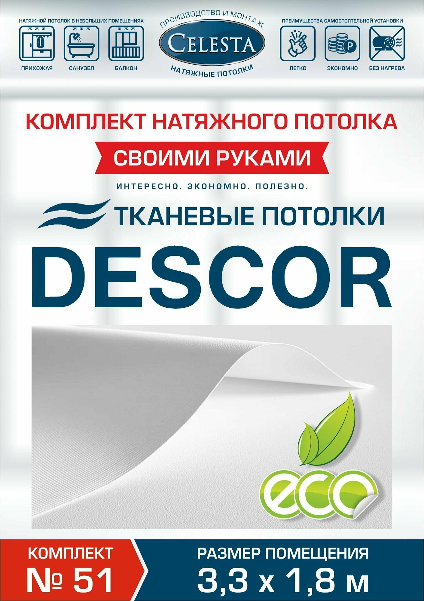 Ниже Вы можете прочитать отзывы на Комплект натяжного потолка (Тканевый потолок) №51 для комнаты размером до 3,3x1,8 м., ознакомится с подробными характеристиками, посмотреть интересные обзоры и фотографии на Комплект натяжного потолка (Тканевый потолок) №51 для комнаты размером до 3,3x1,8 м..