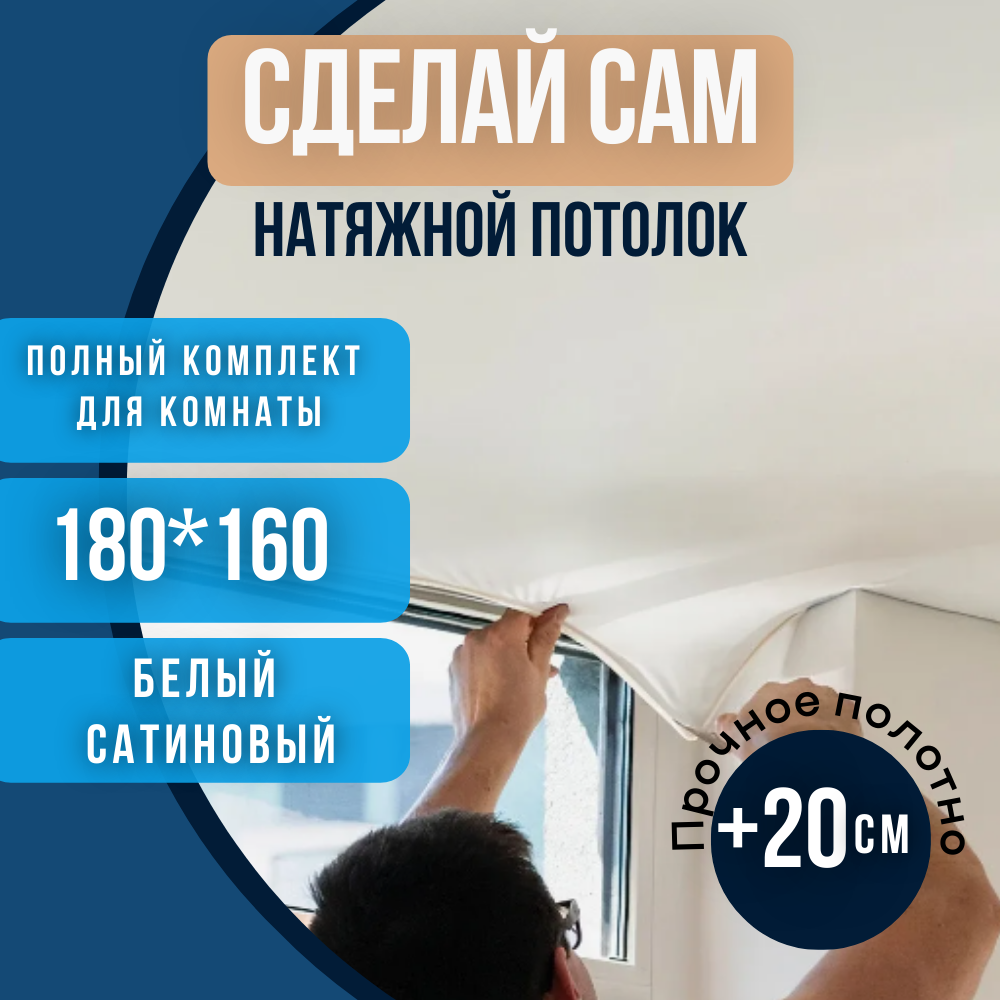 Ниже Вы можете прочитать отзывы на Комплект натяжного потолка 180*160 белый сатиновый без нагрева "Сделай сам", ознакомится с подробными характеристиками, посмотреть интересные обзоры и фотографии на Комплект натяжного потолка 180*160 белый сатиновый без нагрева "Сделай сам".