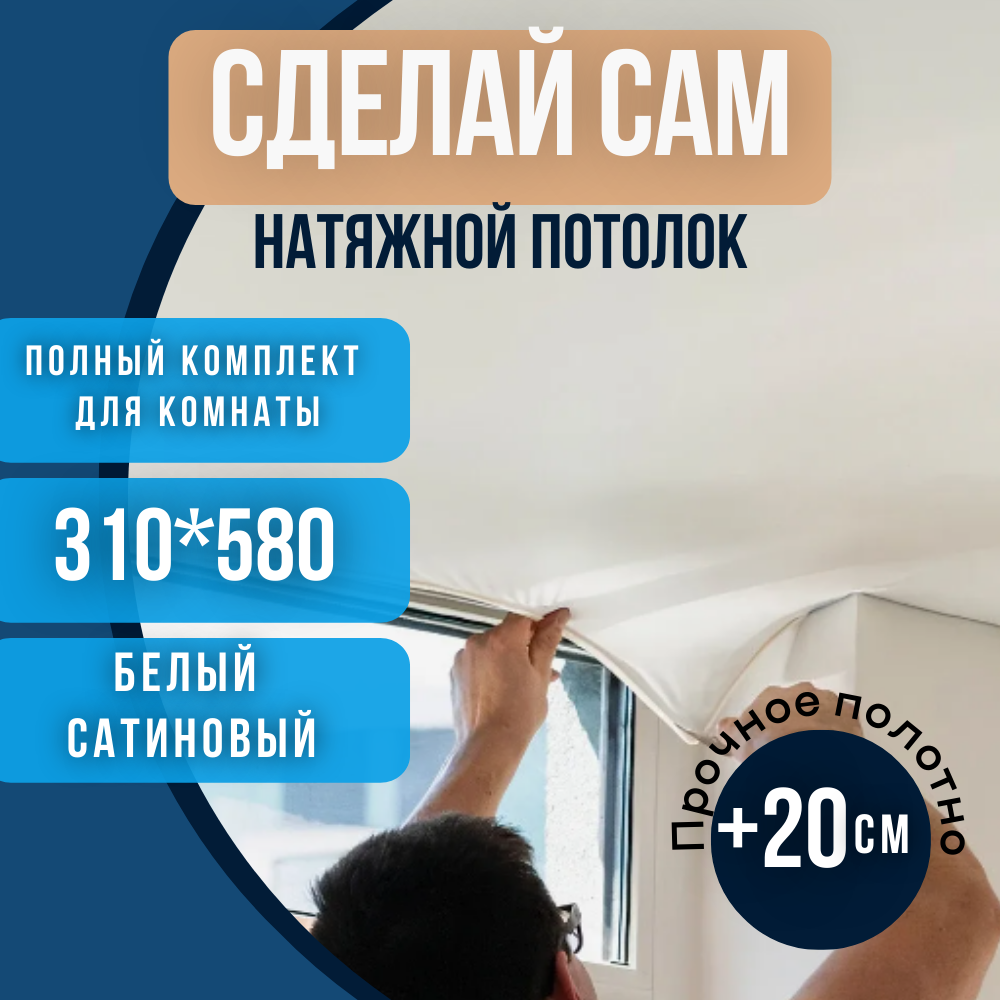 Комплект натяжного потолка 310*280 белый сатиновый без нагрева "Сделай сам"