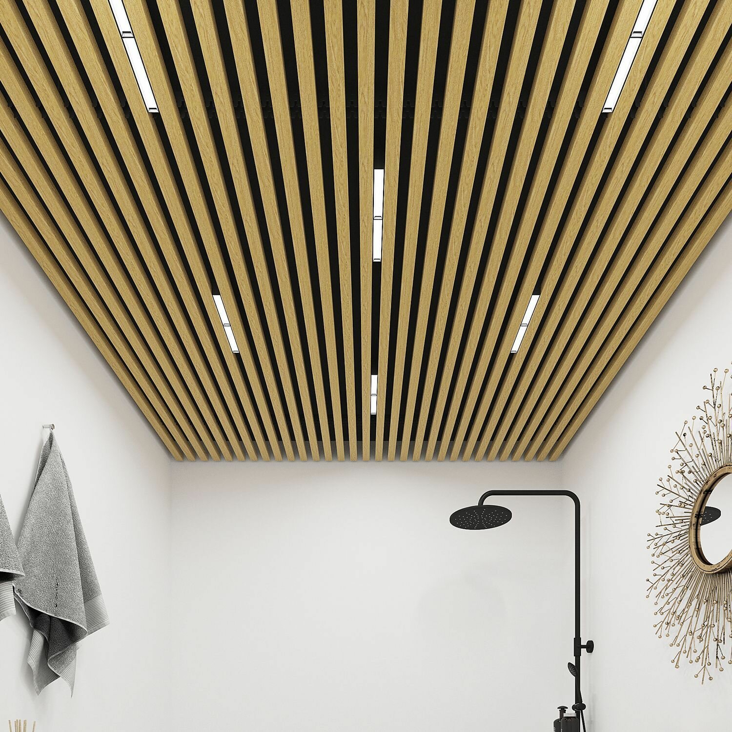 Купить Комплект реечного алюминиевого кубообразного потолка CESAL для ванной, входных групп, санузлов и лоджий 1,7х1,7м AR C 30/27, дуб селект