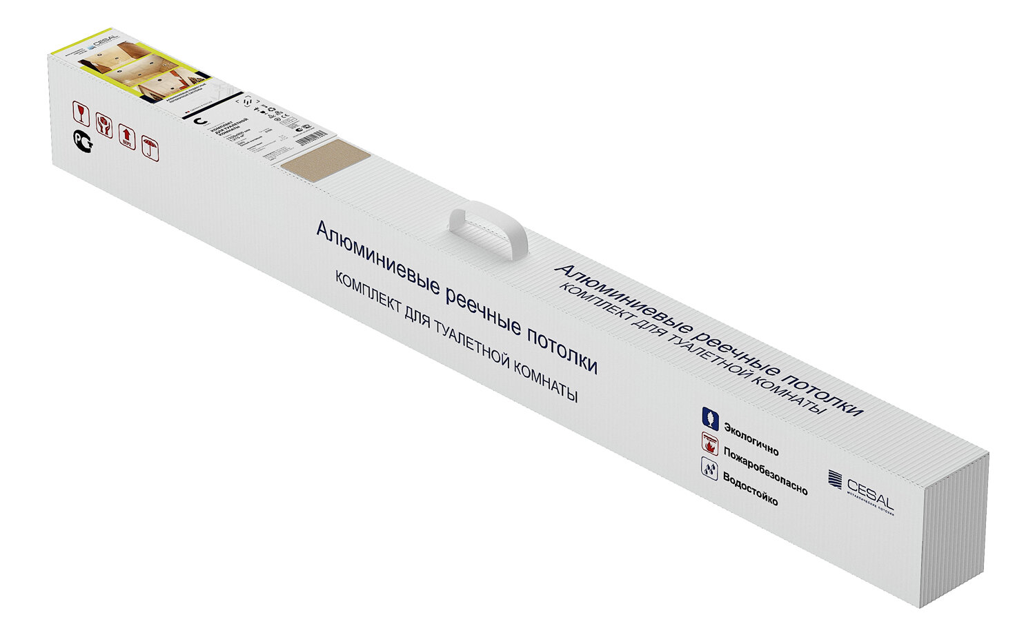 Комплект реечного алюминиевого потолка CESAL для туалетной комнаты 1,35х0,9м S100, жемчужно-белый