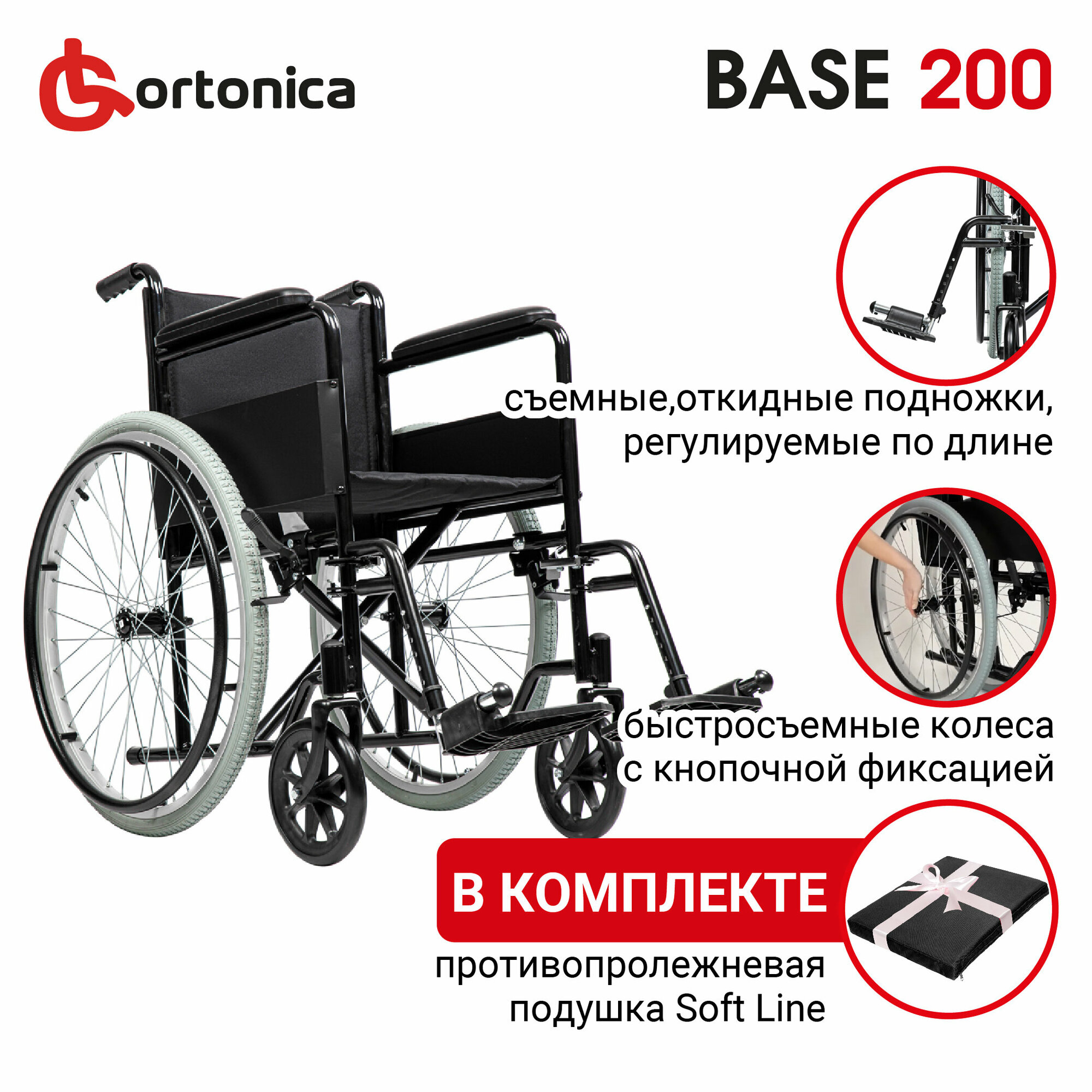 Набор кресло-коляска инвалидная прогулочная механическая Ortonica Base 100/Base 200 ширина сиденья 43 см задние пневматические колеса, передние литые + подушка противопролежневая