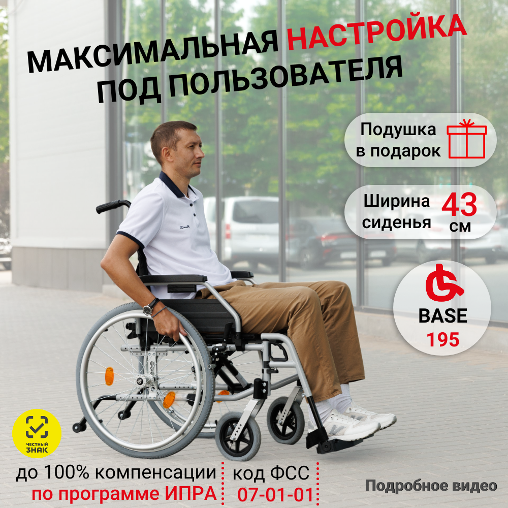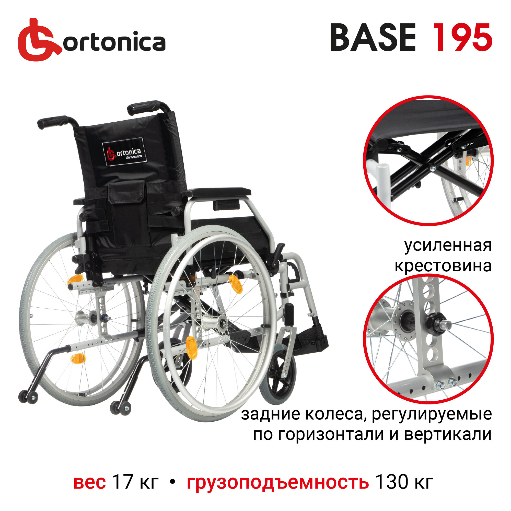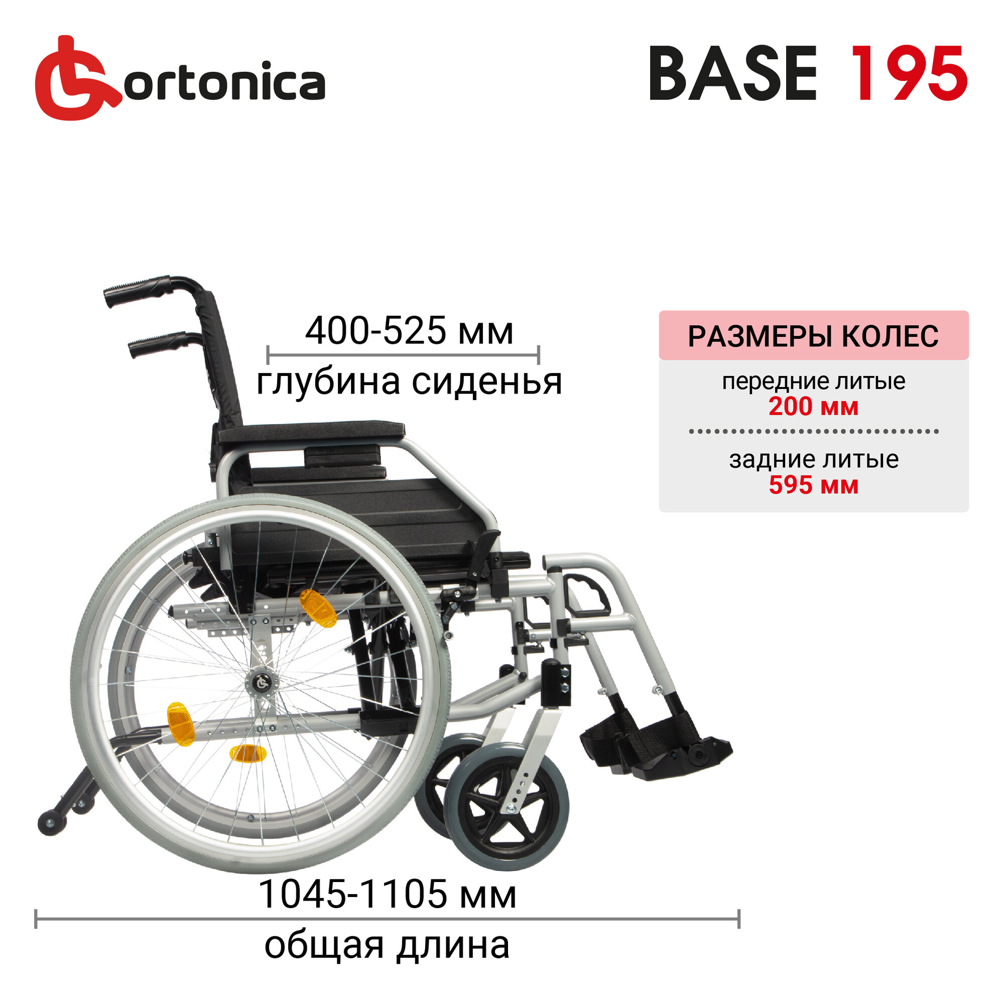 Кресло-коляска Ortonica Base 195/ Base Lite 350 43PP прогулочная инвалидная складная с регулируемыми подножками ширина сиденья 43 см пневматические колеса