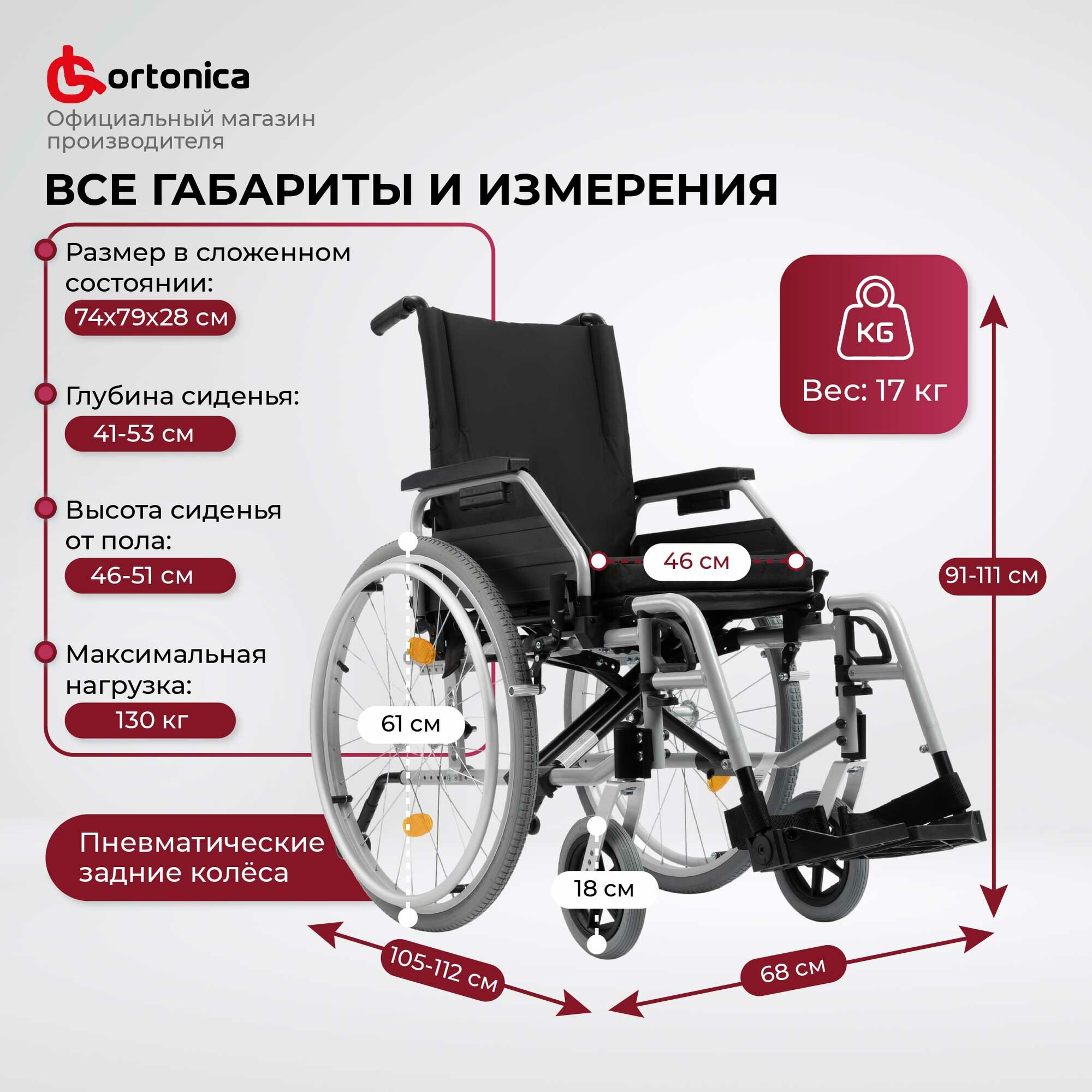 СохранитьКресло-коляска Ortonica Base 195/ Base Lite 350 46PP прогулочная инвалидная складная с регулируемыми подножками ширина сиденья 46 см пневматические колеса интересное: