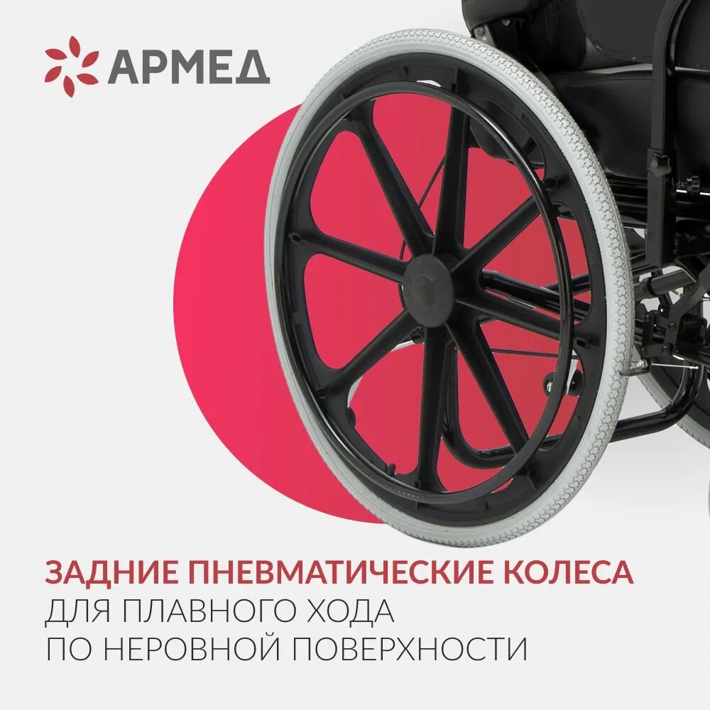 Кресло-коляска инвалидная Армед FS204BJQ (автомобильное сиденье ширина 48 см, пневматические колеса, для взрослых, прогулочная, механическая) интересное: