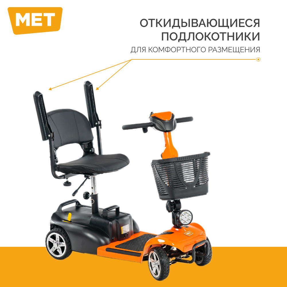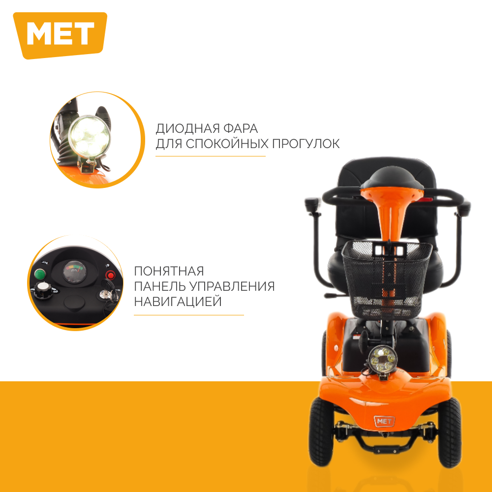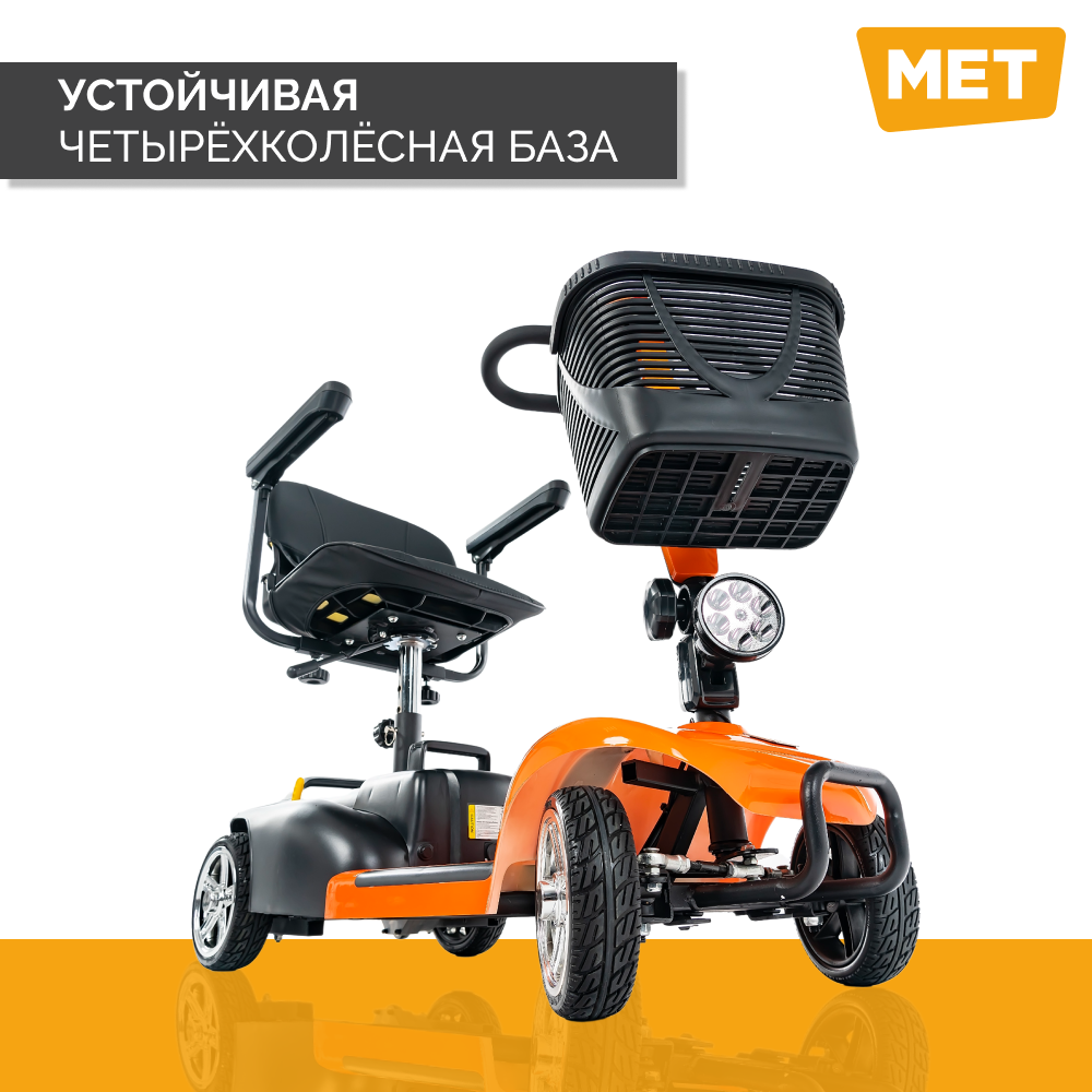 Электрический скутер четырехколесный для инвалидов и пожилых людей MET EXPLORER 250 (Оранжевый) / Электроскутер интересное: