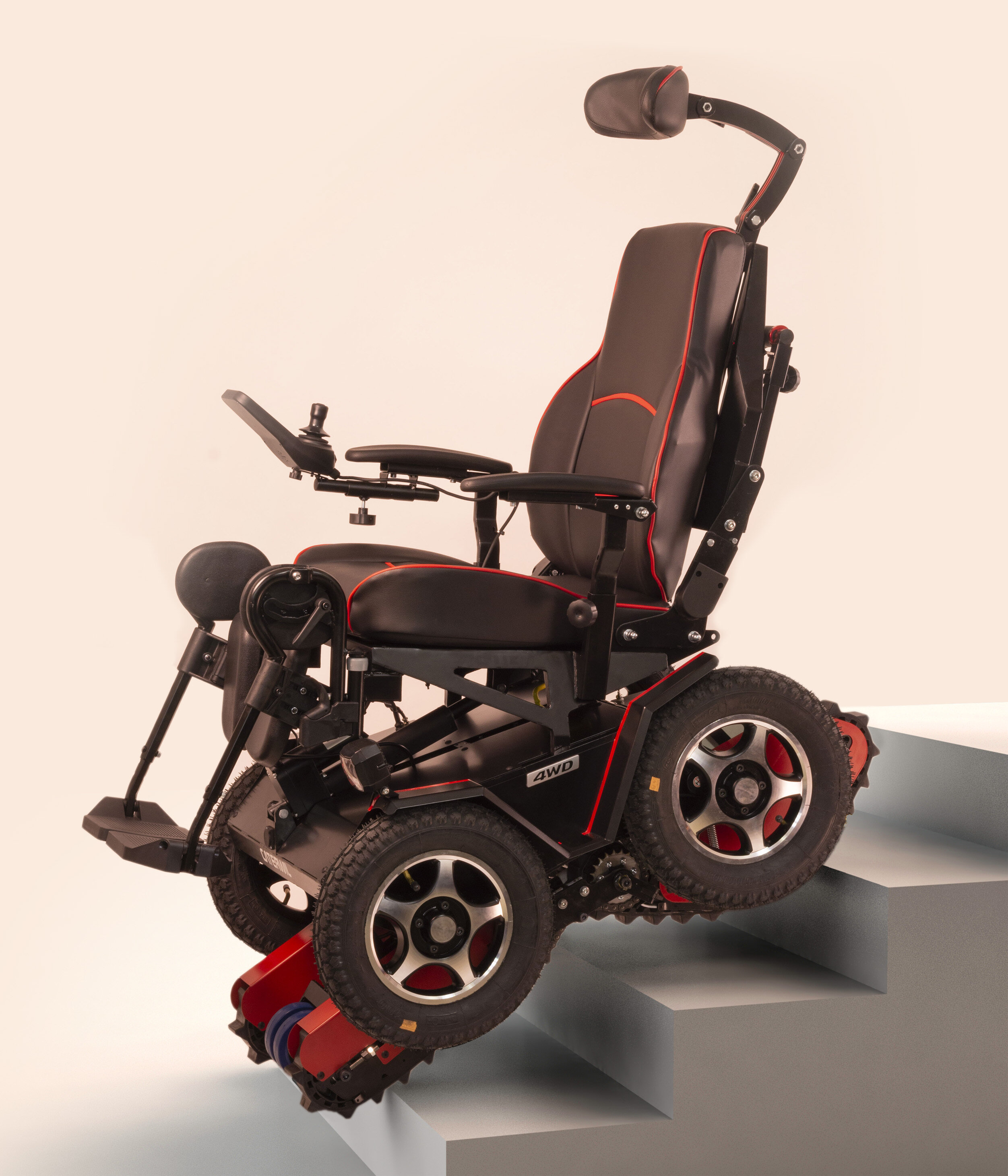 Кресло-коляска вездеход ступенькоход Caterwil GTS 4WD интересное: