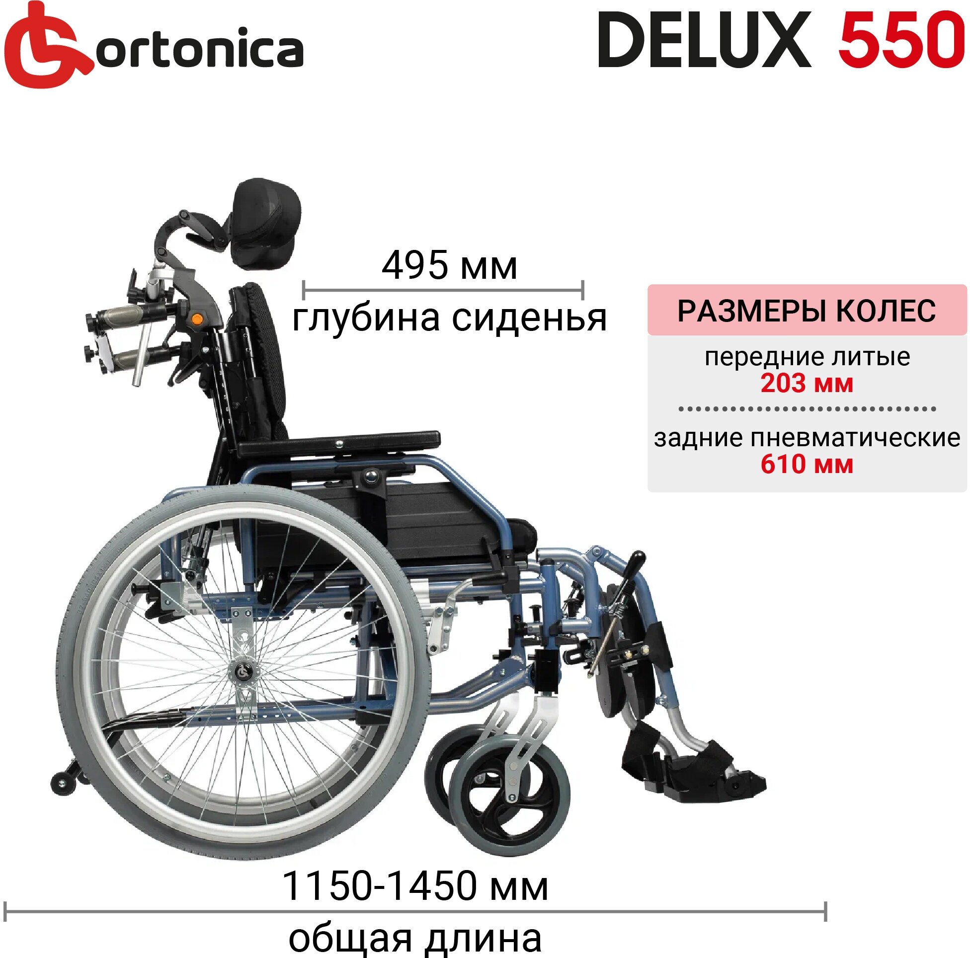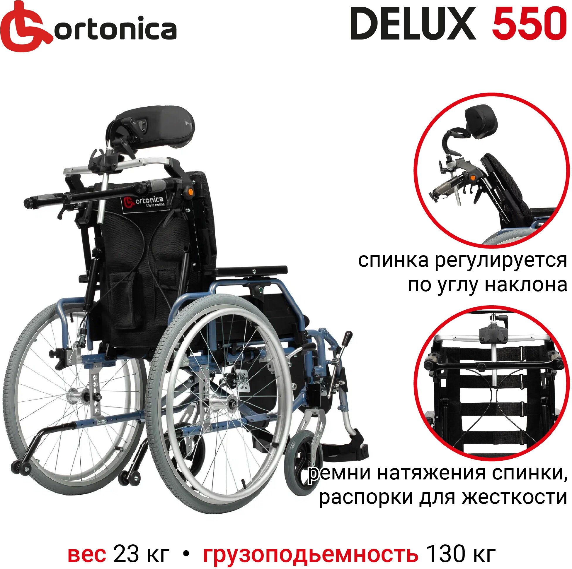 Купить Кресло-коляска прогулочная для инвалидов Ortonica Delux 550 46PU складная с регулируемой спинкой и подголовником ширина сиденья 46см передние литые задние пневматические колеса