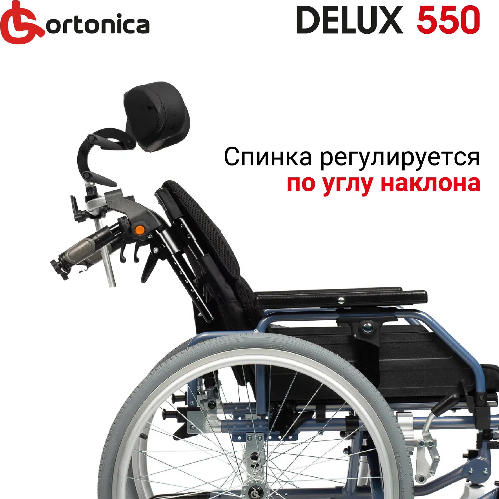Кресло-коляска прогулочная для инвалидов Ortonica Delux 550 43PU складная с регулируемой спинкой и подголовником ширина сиденья 48см передние литые задние пневматические колеса