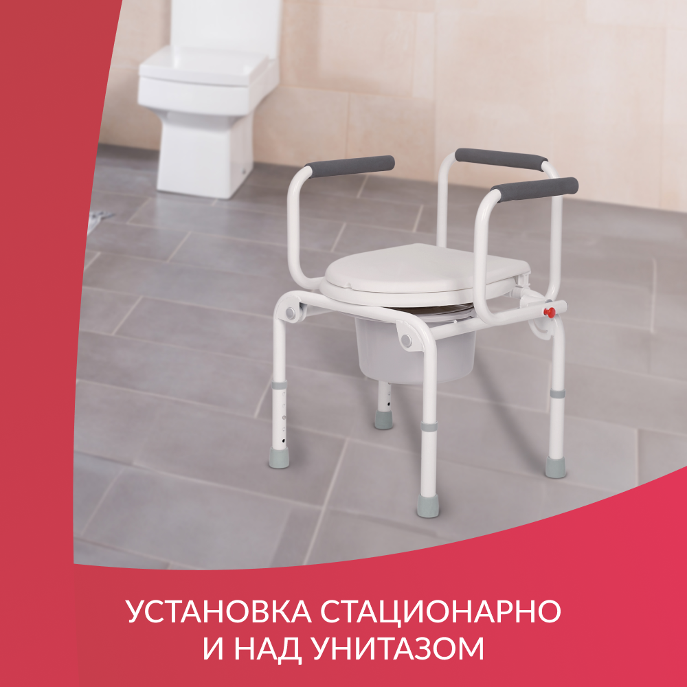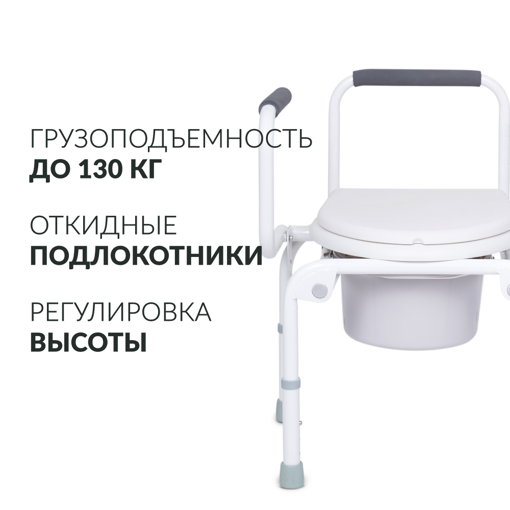 | Особенности | откидываемая крышка / откидываемые подлокотники / противоскользящие наконечники ножек / противоскользящие подлокотники / регулировка высоты сиденья / съемное санитарное оснащение |