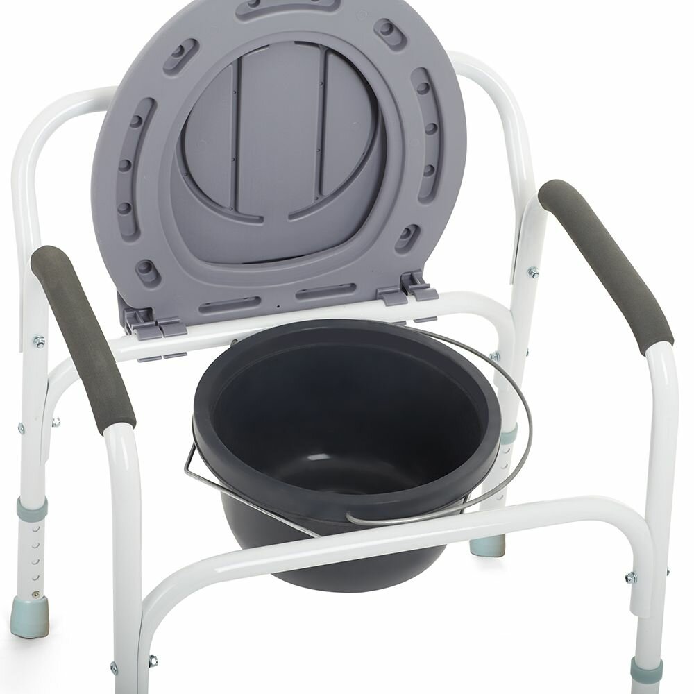 | Особенности | откидываемая крышка / противоскользящие наконечники ножек / противоскользящие подлокотники / регулировка высоты сиденья / съемное санитарное оснащение |