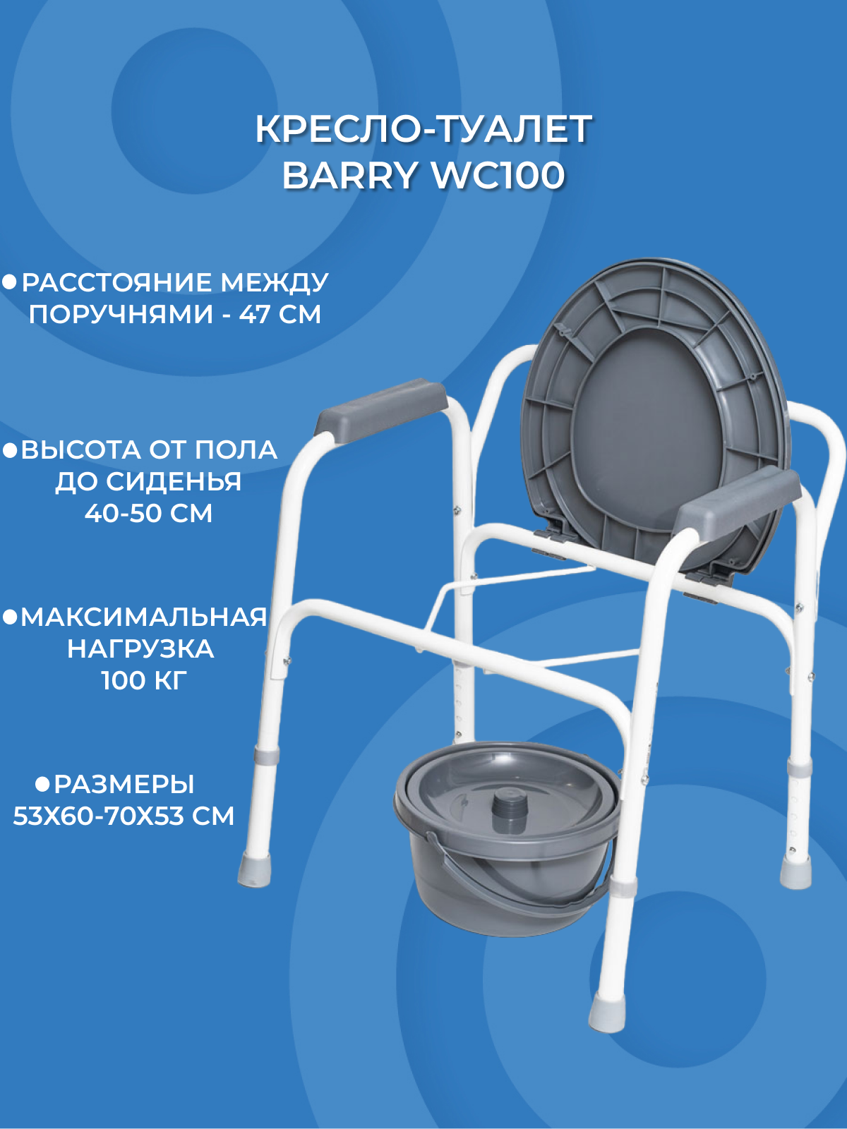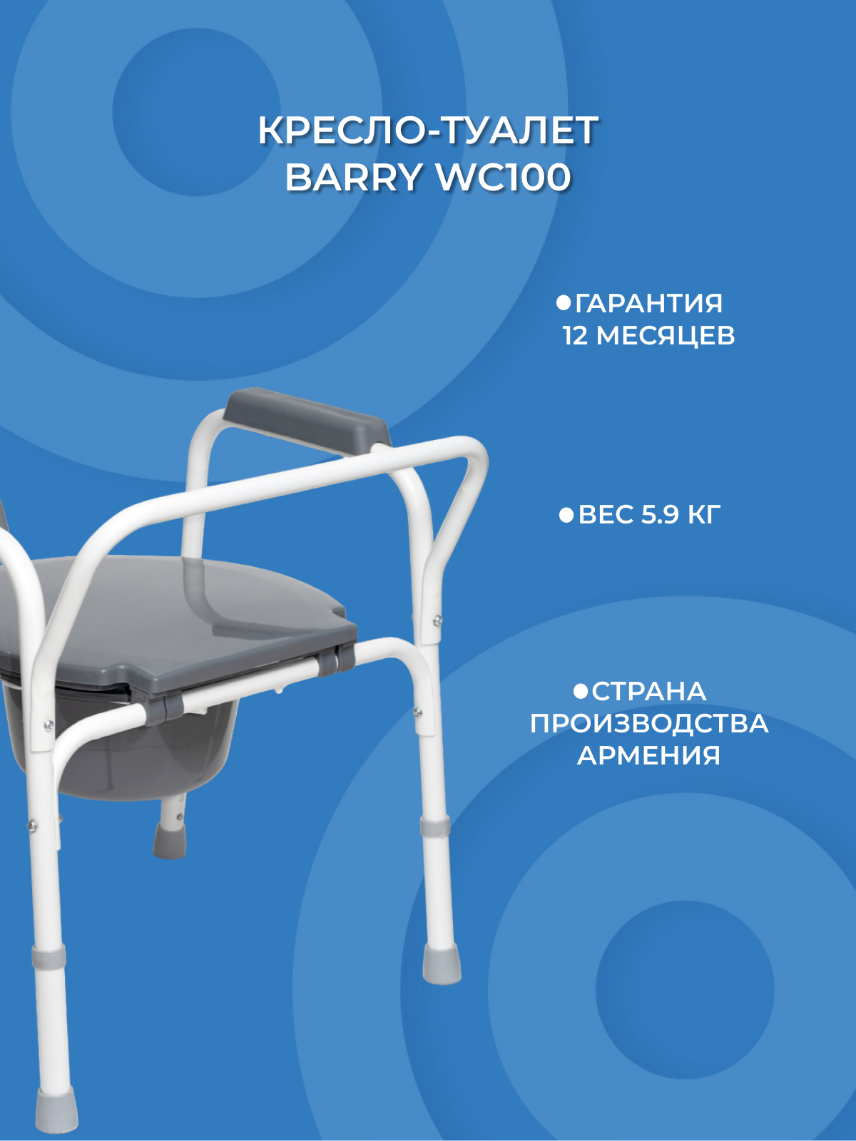 Кресло туалет для инвалидов Barry WC100 интересное:
