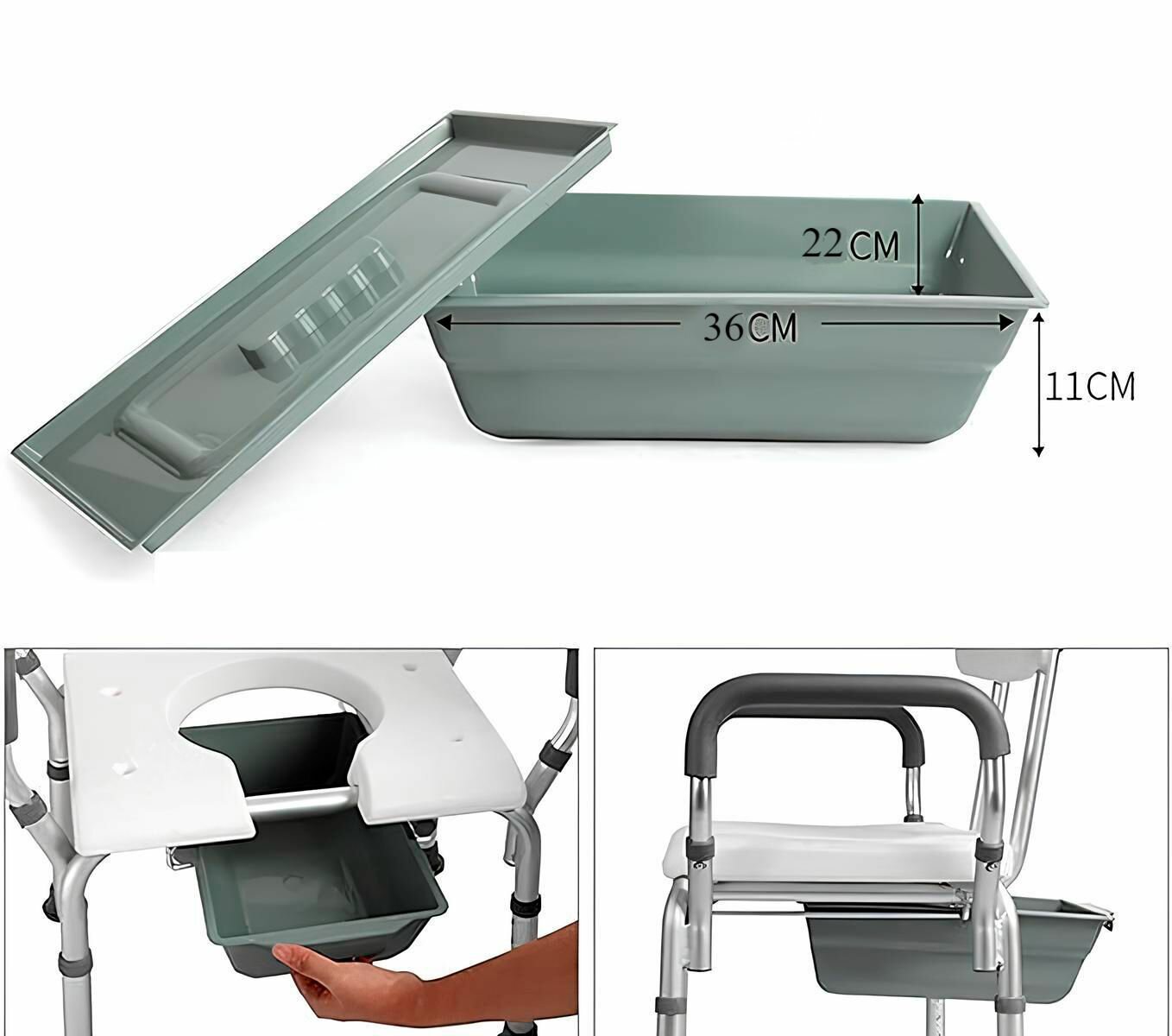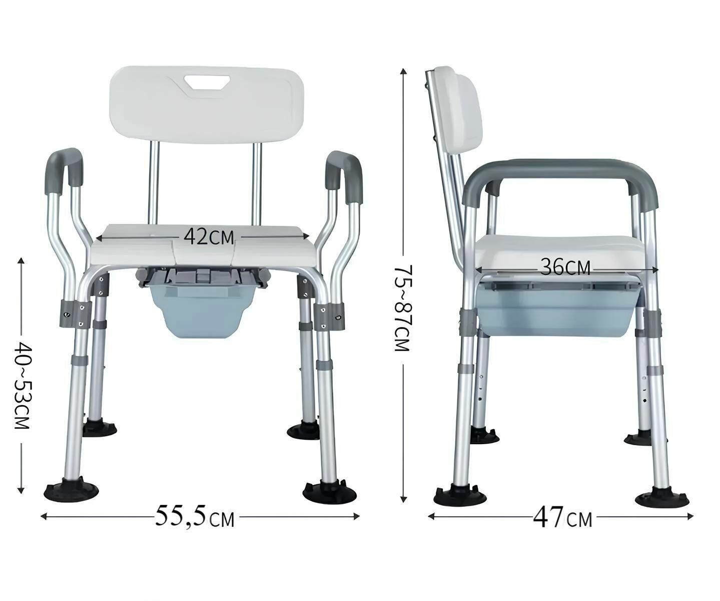 | Особенности | использование в качестве стула / откидываемая крышка / откидываемые подлокотники / противоскользящие наконечники ножек / противоскользящие подлокотники / регулировка высоты сиденья / съемная спинка / съемное санитарное оснащение |