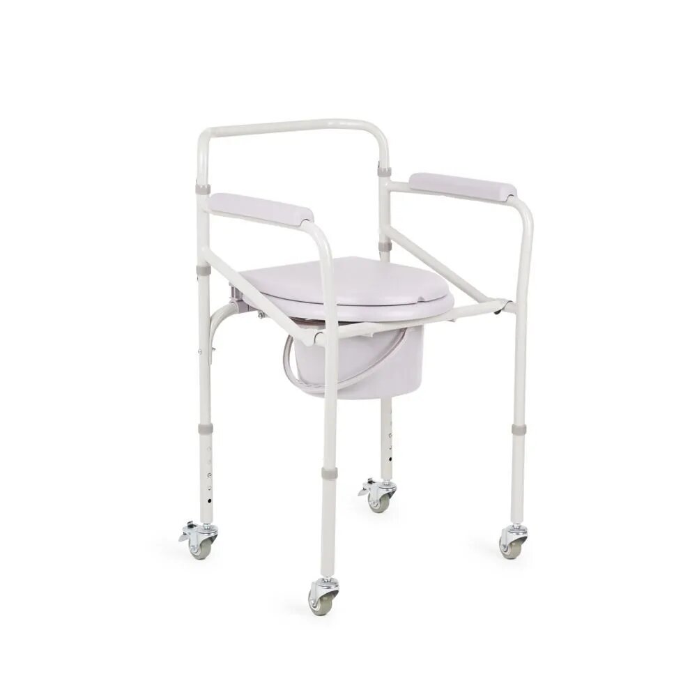 | Особенности | откидываемая крышка / противоскользящие подлокотники / регулировка высоты сиденья / съемное санитарное оснащение / съемные колеса / тормозное устройство на колесах |