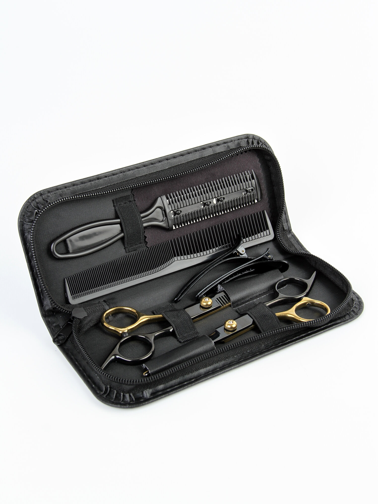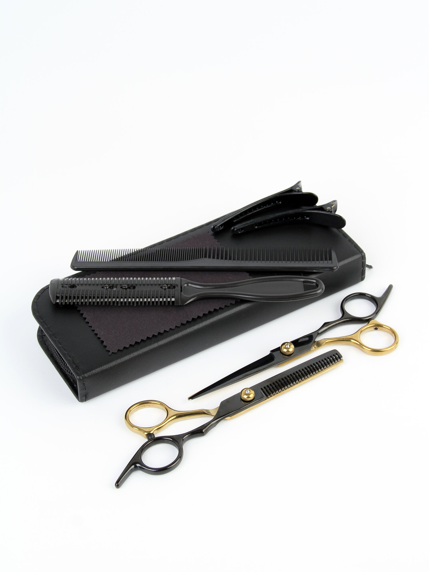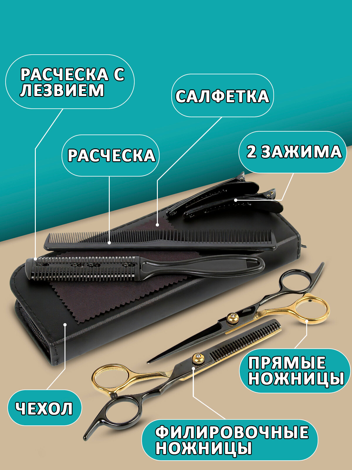 | Подробная комплектация | прямые ножницы - 1 шт; филировочные ножницы - 1 шт; чехол - 1 шт; зажимы для волос - 2 шт; салфетка для ножниц - 1 шт. |