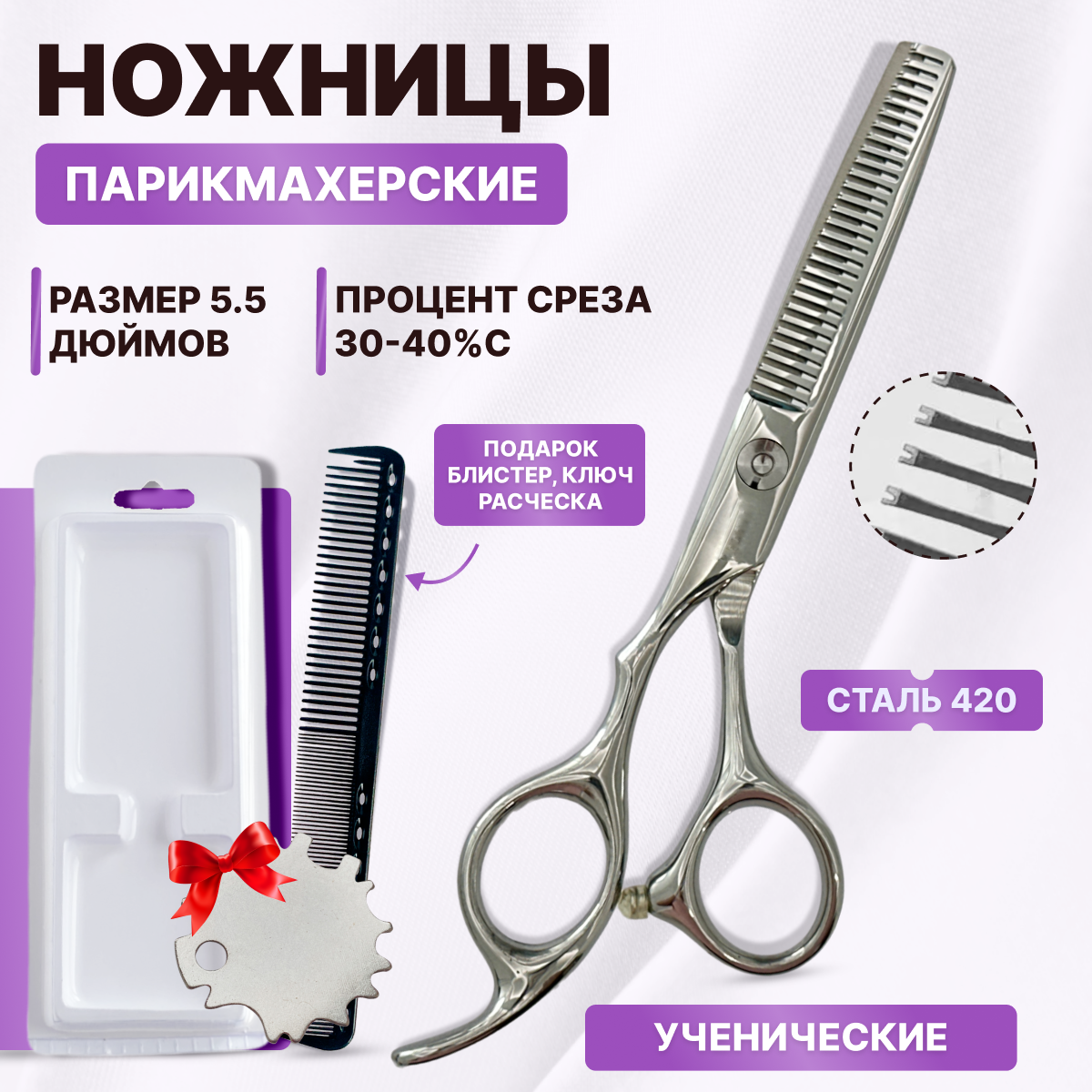 CHARITES / Ножницы филировочные парикмахерские, хромированные с камнем, размер 5.5, 28 зубцов TG (7496Т) Расческа, блистер, ключ в подарок! интересное: