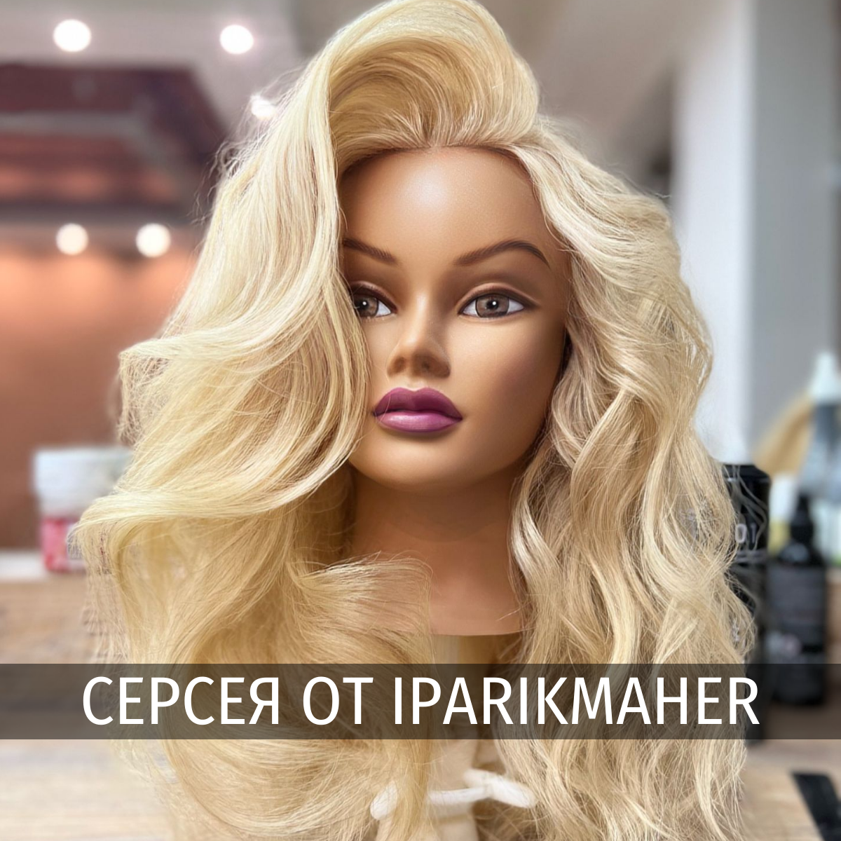 Учебная голова Серсея IPARIKMAHER манекен для причесок 100% натуральные человеческие славянские волосы 60 см. Штатив в подарок. интересное: