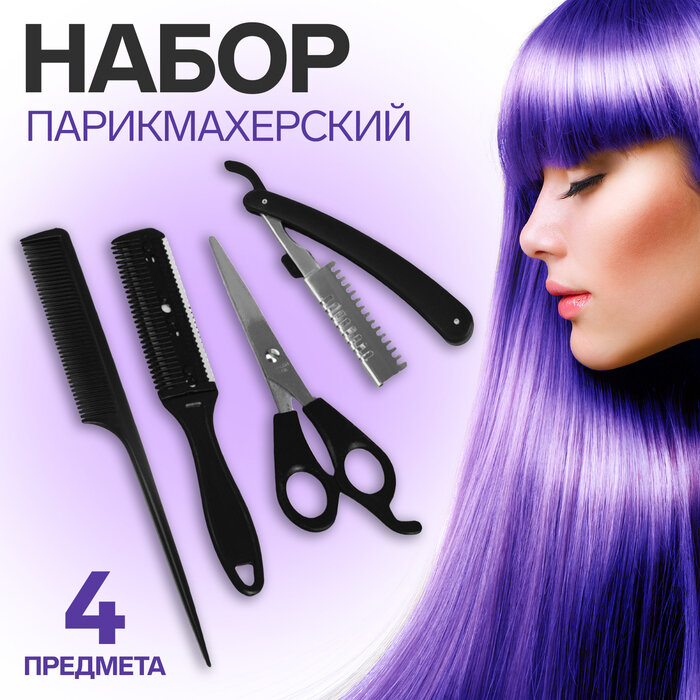 Набор парикмахерский, 4 предмета, цвет чёрный интересное: