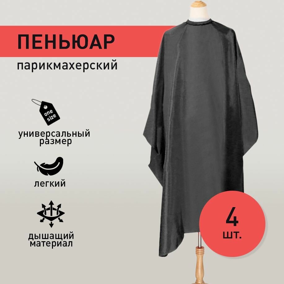 Купить Парикмахерская накидка (пеньюар), 156x143, 4 шт., антистатик, на застежке, черный