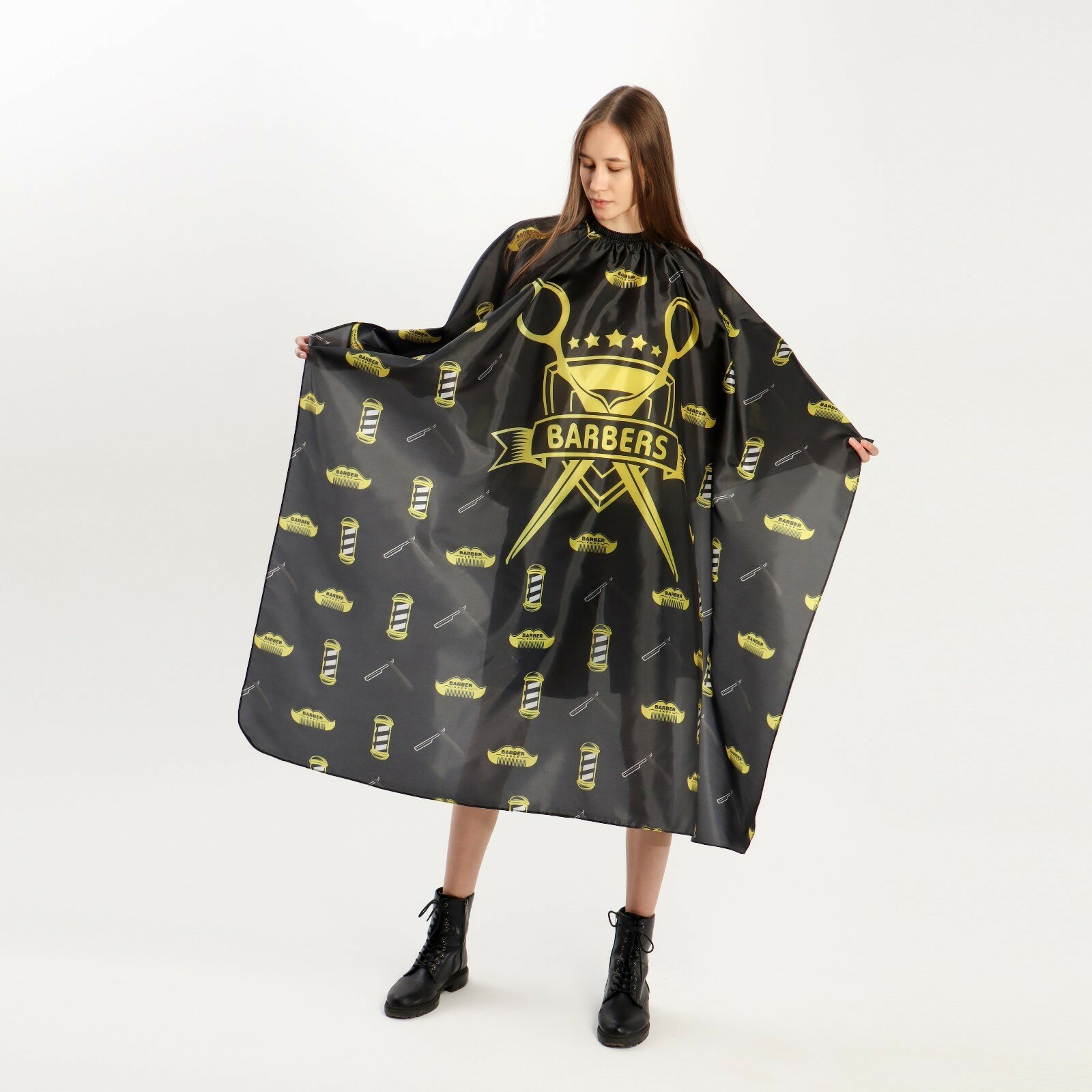 Пеньюар парикмахерский, с крючком, цвет чёрный/жёлтый интересное: