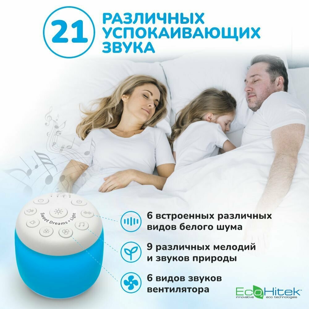 Купить Генератор белого шума Sweet Dreams с подсветкой. Ночник для детей. Регулируемая яркость и громкость. Аккумулятор. Работа от сети. Таймер