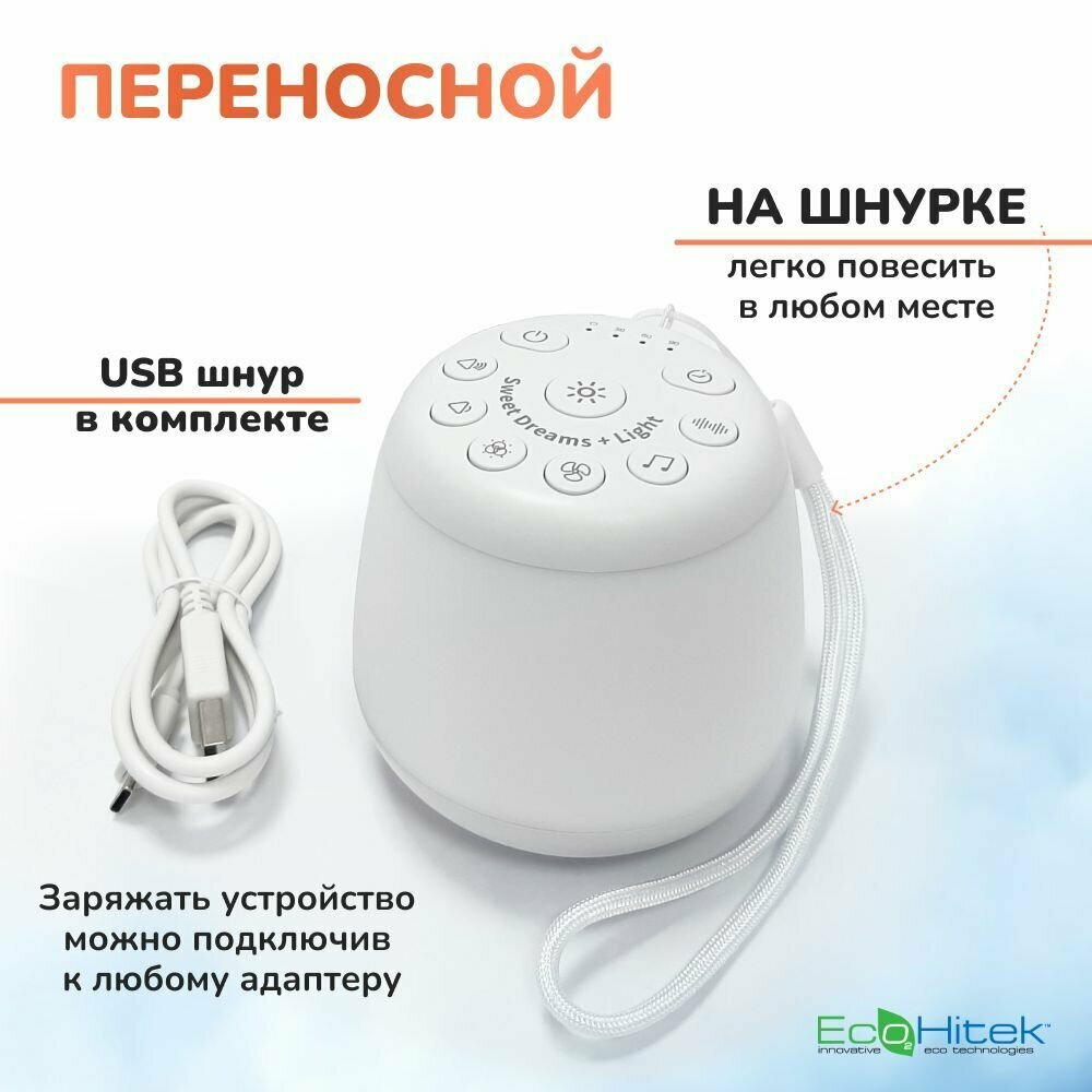 Генератор белого шума Sweet Dreams с подсветкой. Ночник для детей. Регулируемая яркость и громкость. Аккумулятор. Работа от сети. Таймер интересное: