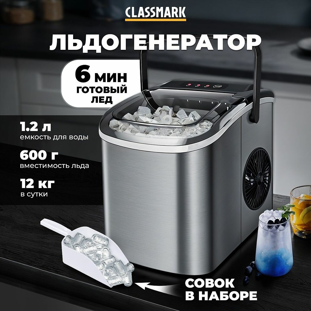 Льдогенератор для дома Classmark KM-9 генератор льда заливной, пальчиковый, 10-12 кг в сутки, вместимость 1.2 л, черный и серый интересное: