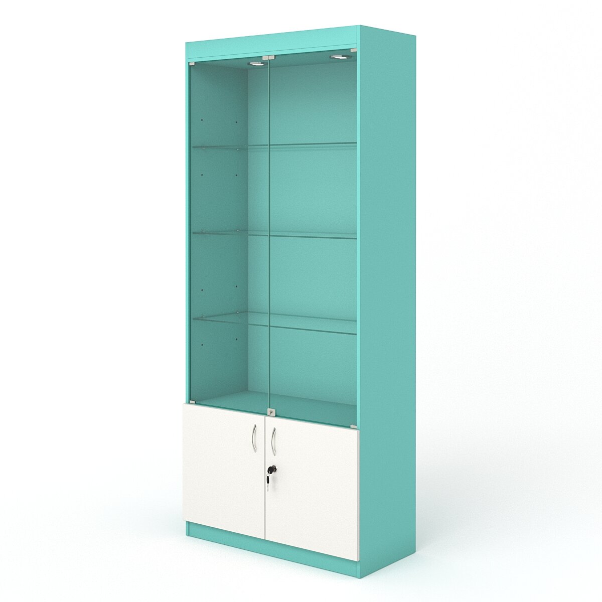 Витрина №1-1 (с дверками, задняя стенка - ДВП), Тиффани Аква и Белый 90 x 42 x 210 см интересное: