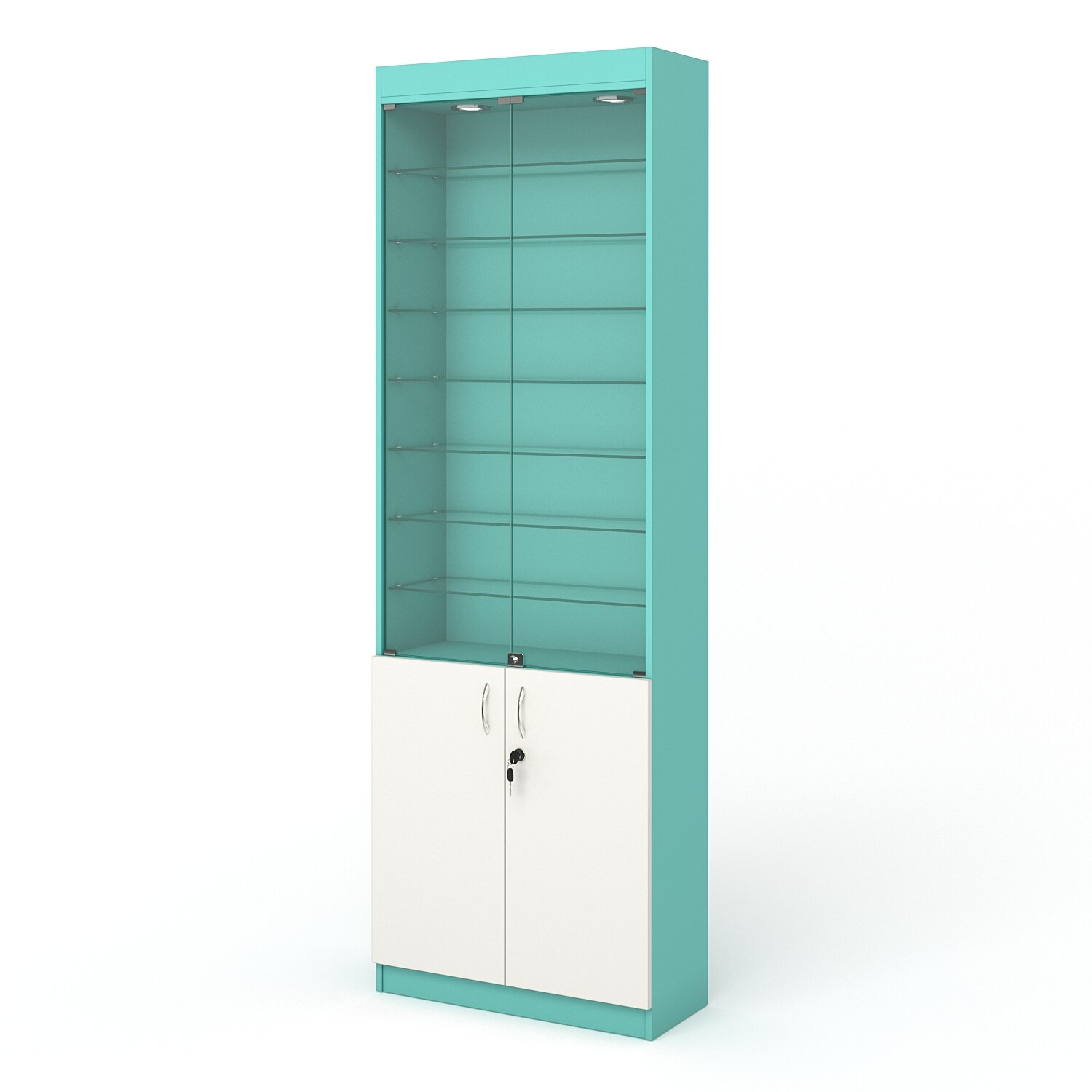 Витрина №6-1 (с дверками, задняя стенка - ДВП), Тиффани Аква и Белый 70 x 30 x 210 см интересное: