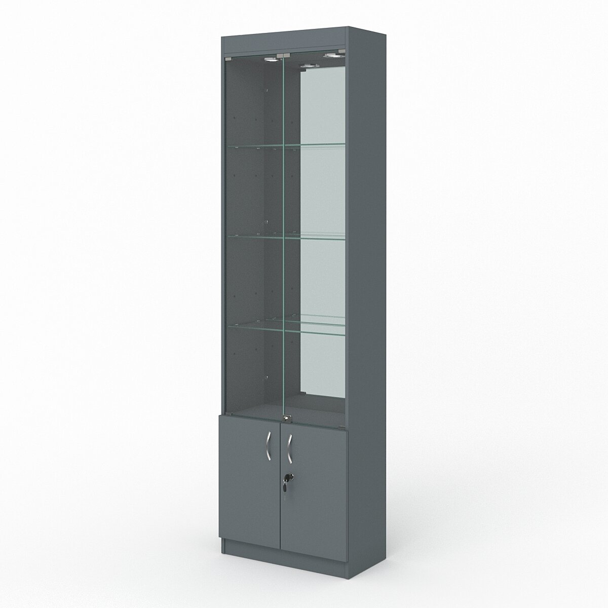 Витрина №300-3-600 (с дверками, задняя стенка - зеркало), Темно-Серый 60 x 30 x 210 см интересное: