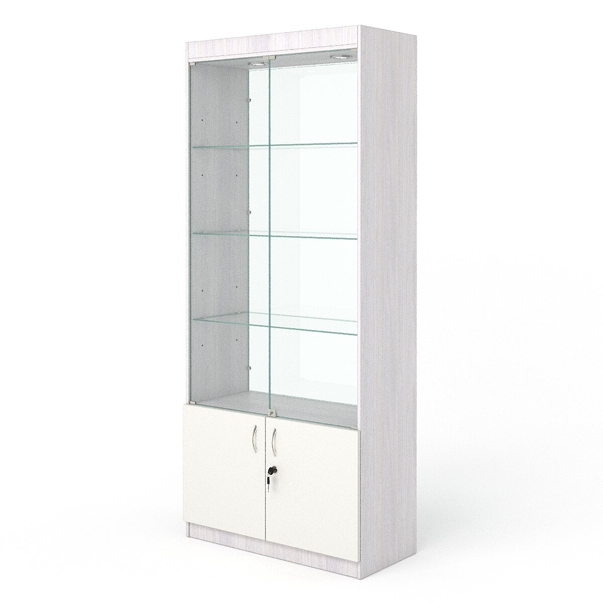 Витрина №1-2 (с дверками, задняя стенка - стекло), Ясень Анкор и Белый 90 x 42 x 210 см интересное: