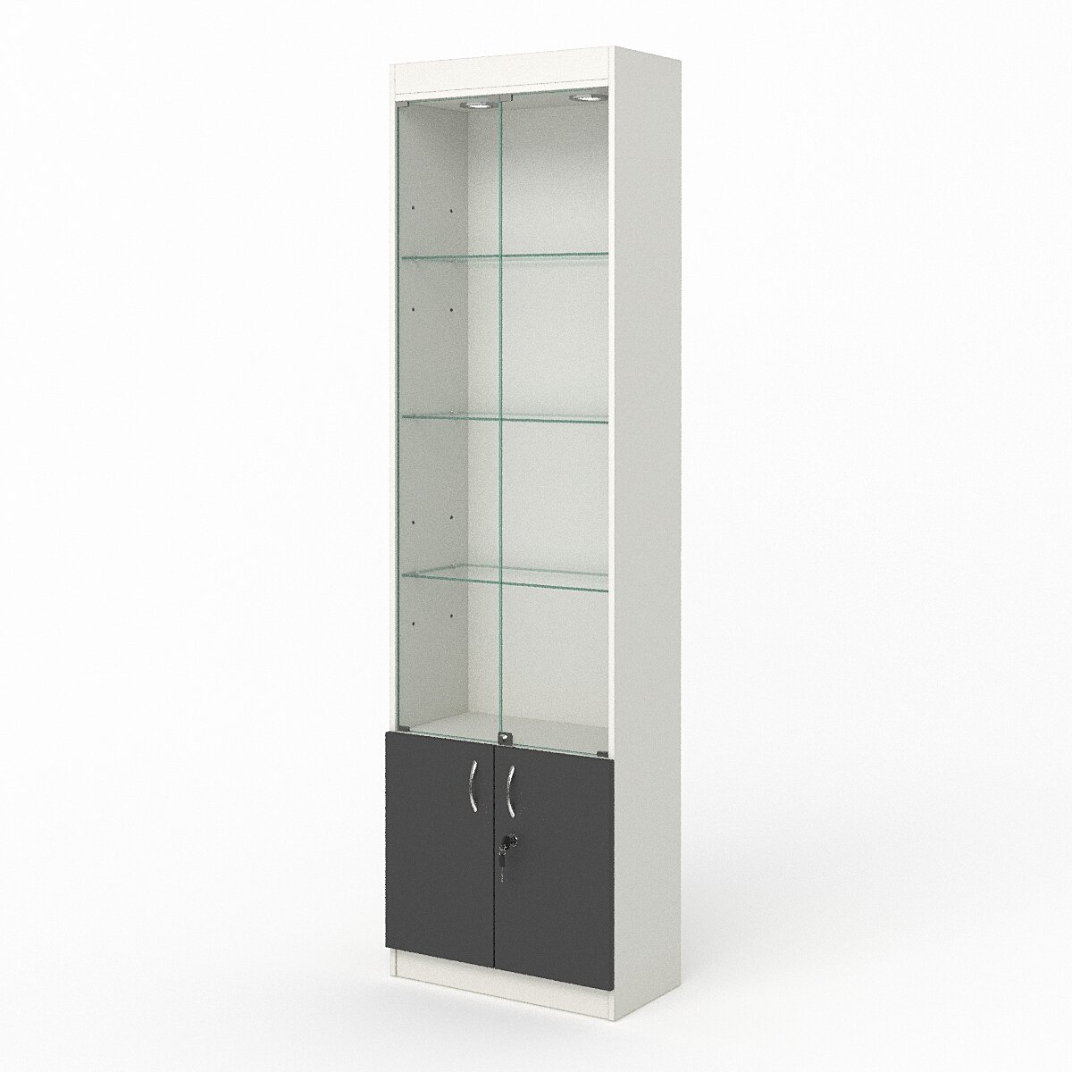 Купить Витрина №300-1-600 (с дверками, задняя стенка - ДВП), Белый и Черный 60 x 30 x 210 см