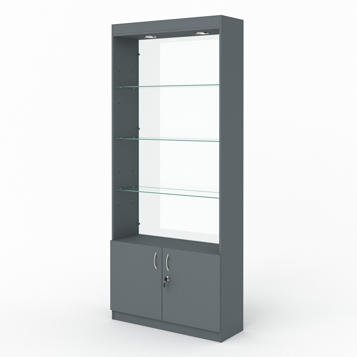 Витрина №300-2 (без дверок, задняя стенка - стекло), Темно-Серый 90 x 30 x 210 см интересное: