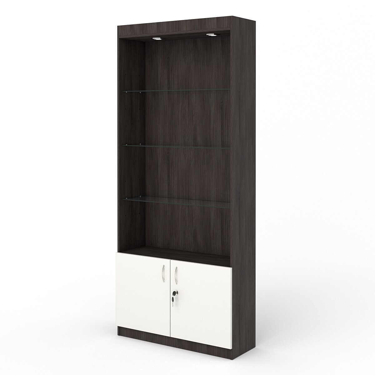 Витрина стеклянная "прима классик" №33 (с дверками, задняя стенка - стекло), Черный 90 x 30 x 209 см
