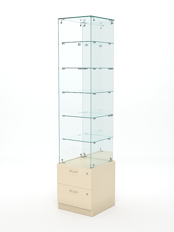 Витрина стеклянная "хрусталь" №608 (без дверки, задняя стенка - зеркало), Крем Вайс 45 x 45 x 202 см интересное: