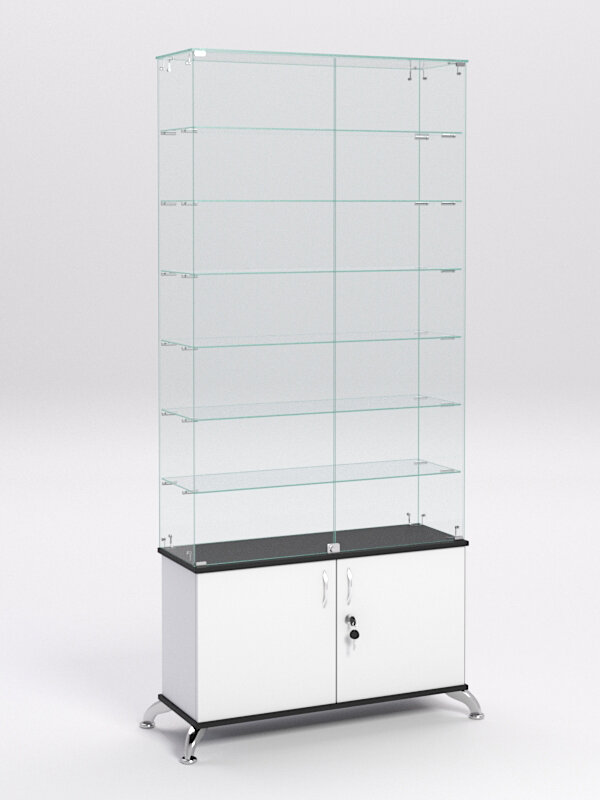 Витрина стеклянная "прима классик" №33 (с дверками, задняя стенка - стекло), Черный 90 x 30 x 209 см