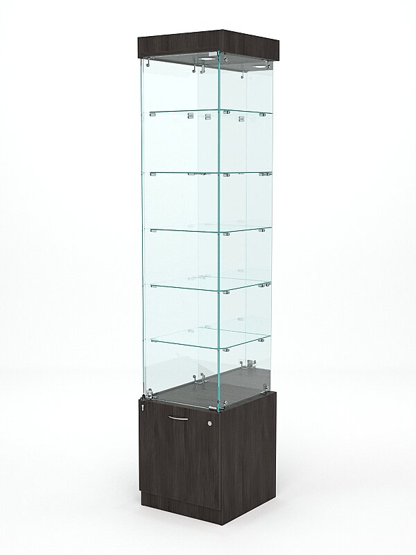 Витрина стеклянная "кристалл" №504 (с дверкой, задняя стенка - зеркало), Грейвуд 45 x 45 x 210 см интересное: